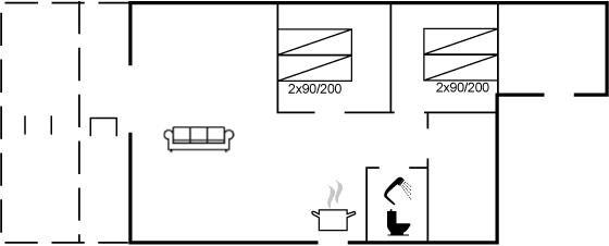 Der er i alt 2 soveværelser. Sovepladserne fordeler sig på: 4 sovepladser i dobbeltsenge.