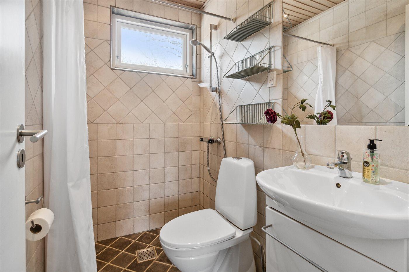 Der er 1 badeværelse med bruser og 1 toilet.. Der er gulvvarme på 1 badeværelse.