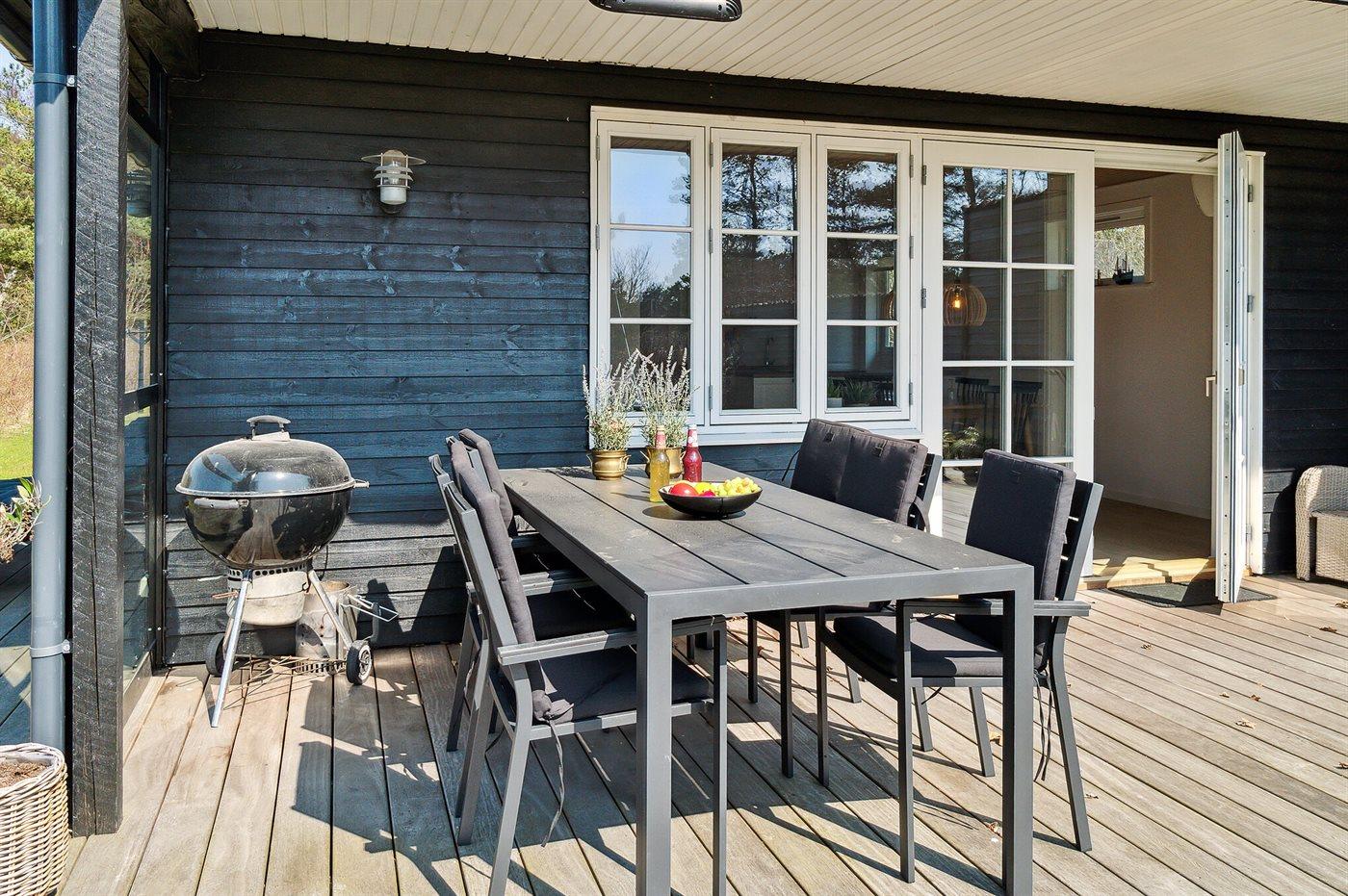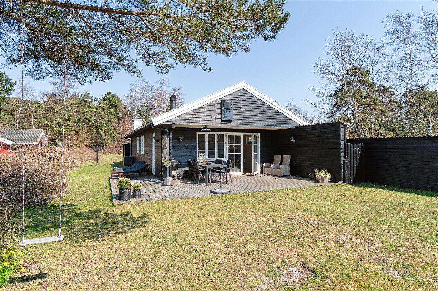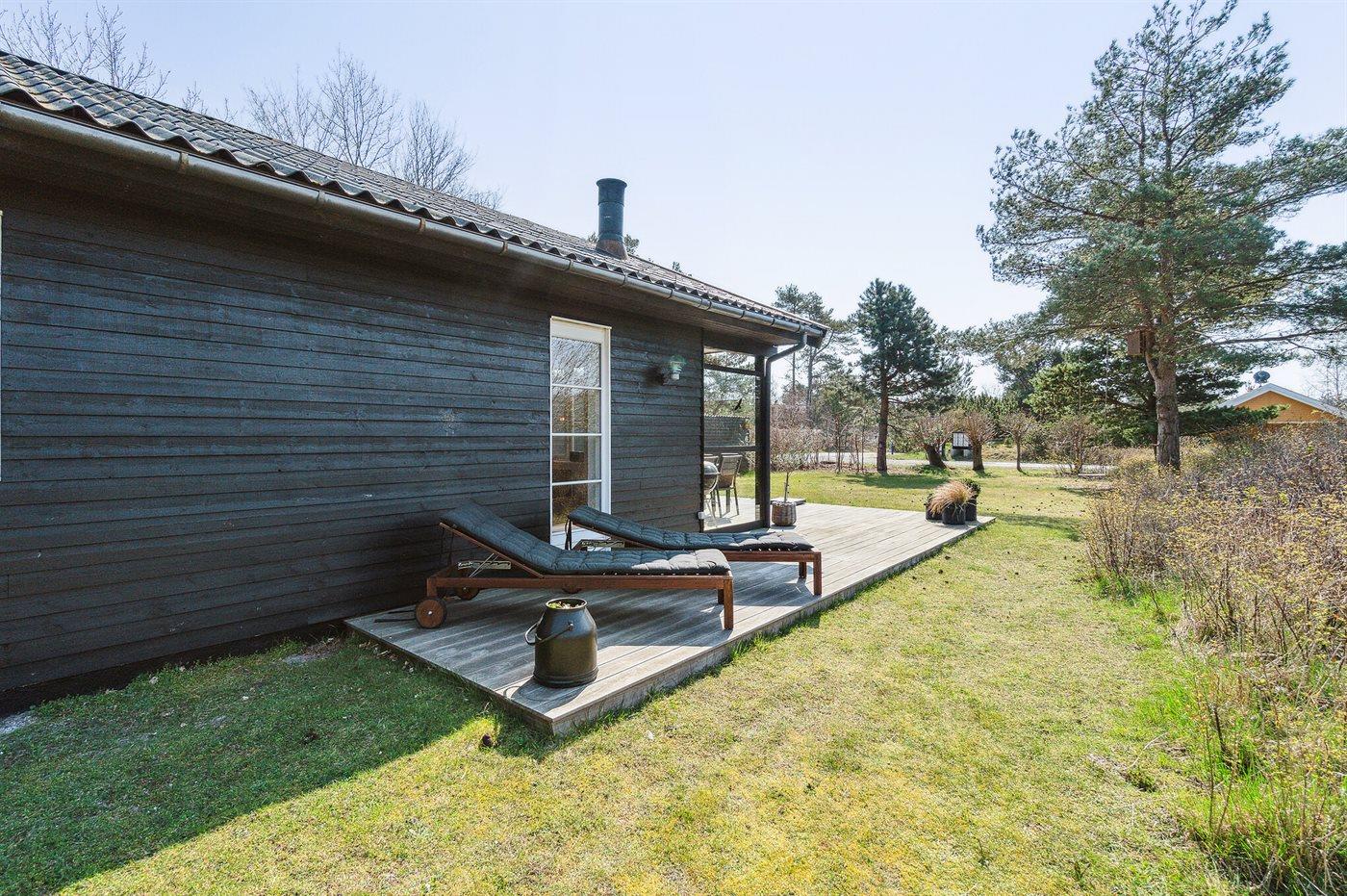 Velholdt træsommerhus i Holsterodde med ugenert terrasse og kort afstand til strand og natur.