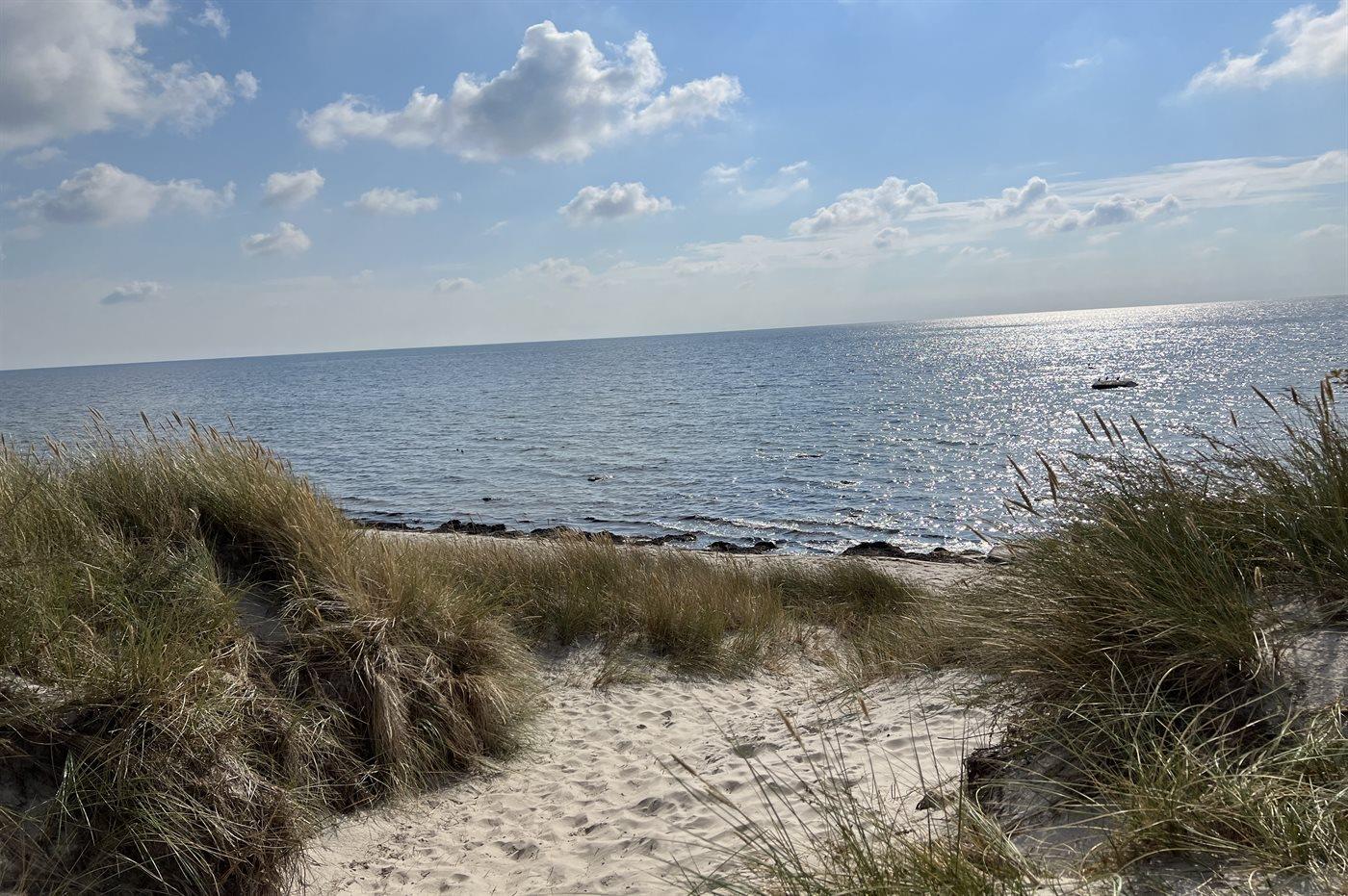 Med en beliggenhed i Sømarken, blot 300 m fra den ugenerede strand, kan huset nydes på alle årstider. I området er der foruden den lille og spændende ø-havn med små aktive fiskekuttere også et røgeri, hvor der i sæsonen både er en række lækre fiskespecialiteter og ofte musikalsk underholdning om aftnerne. I nærheden ligger det berømte spisested Cadeau, der byder på virkelig kulinariske oplevelser af høj klasse. Cykeludlejning og minigolf blot 1.000 m fra huset.