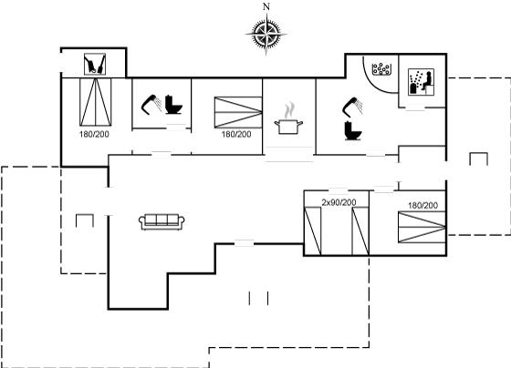 Der er i alt 4 soveværelser. Sovepladserne fordeler sig på: 6 sovepladser i dobbeltsenge. 2 sovepladser i enkeltsenge. Derudover er der 1 stk. barneseng.