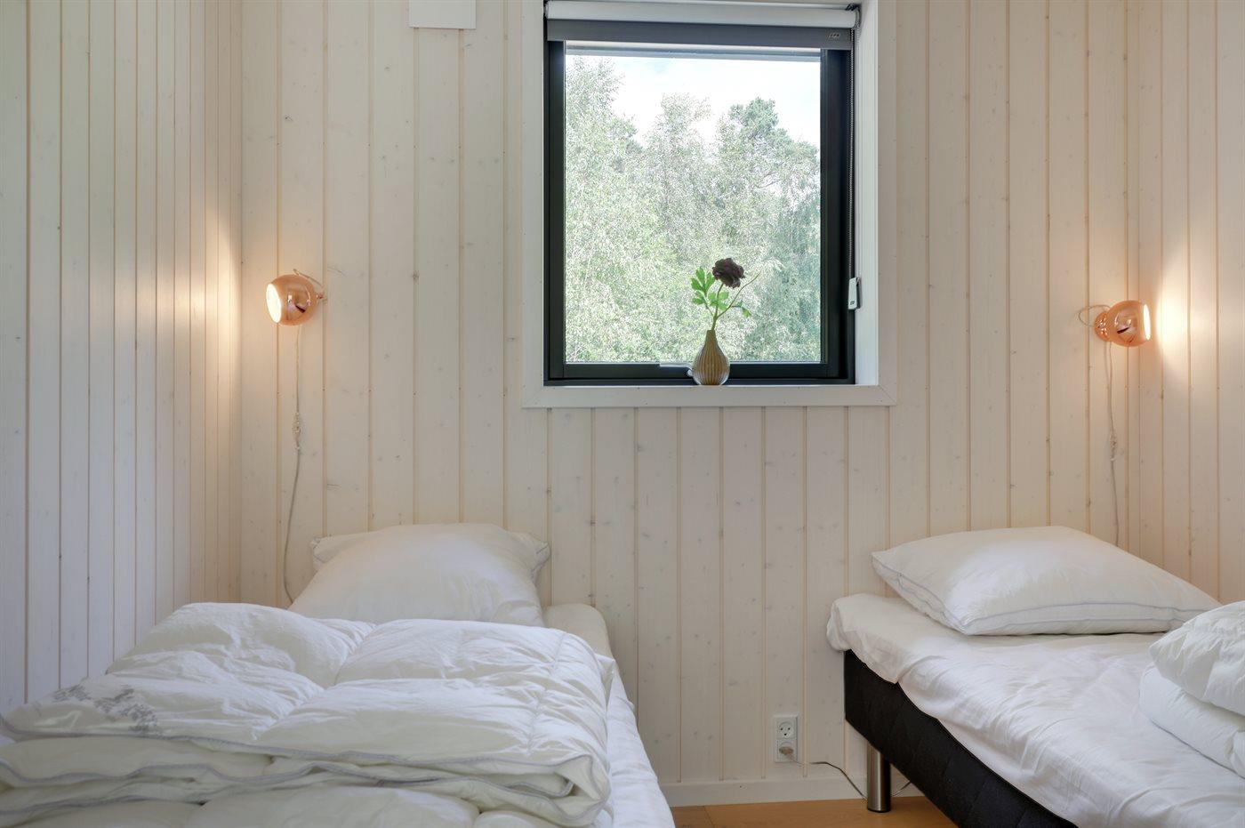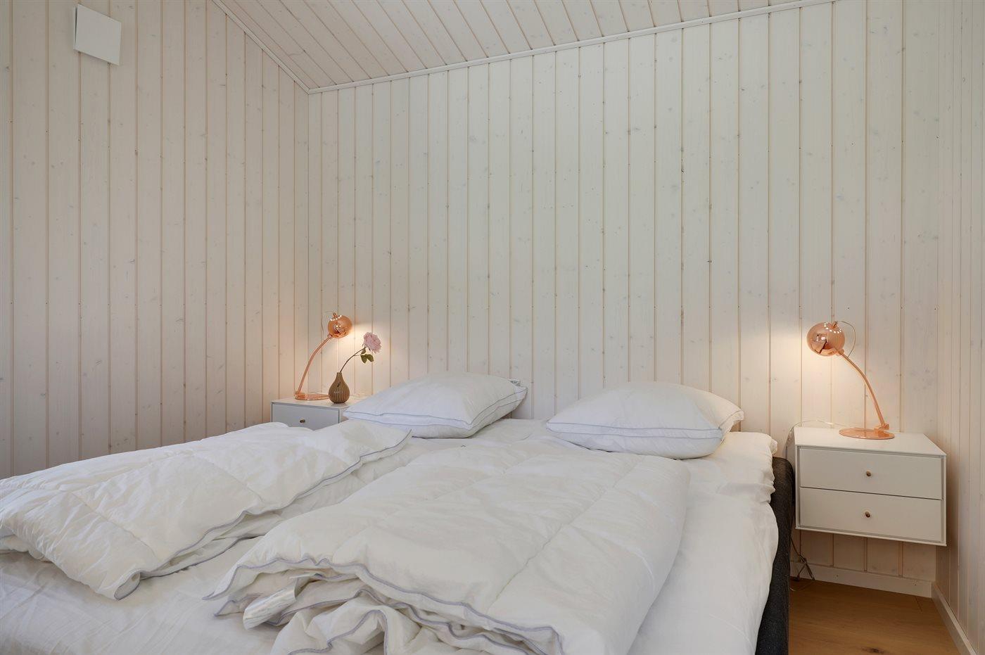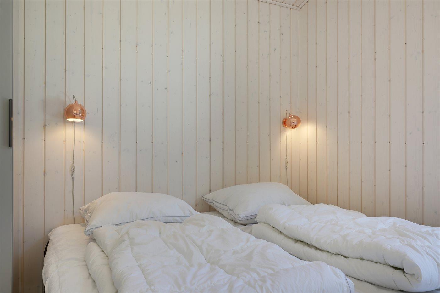 Der er i alt 3 soveværelser. Sovepladserne fordeler sig på: 4 sovepladser i dobbeltsenge. 2 sovepladser i enkeltsenge.