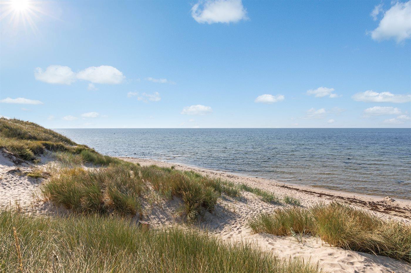 Nybygget (2020) sommerhus i god kvalitet beliggende på en meget stor grund, i et lille sommerhusområde, med egen sti ned til stranden. Flotte træterrasser indbyder til at nyde solen og naturen.