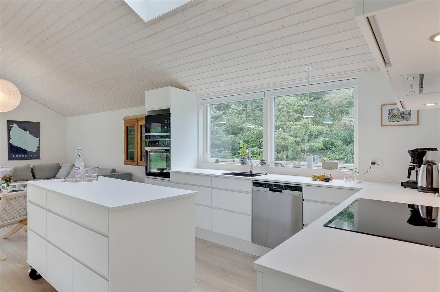 Køkkenet er udstyret med 1 køleskab. Der er 4 induktionskogeplader, varmluftovn, mikrobølgeovn samt opvaskemaskine.