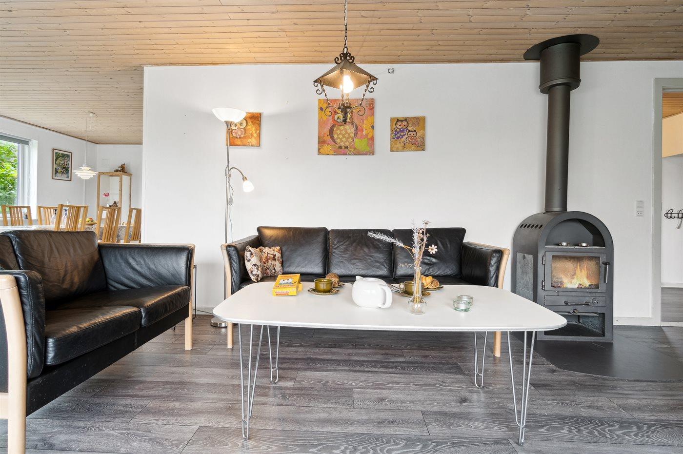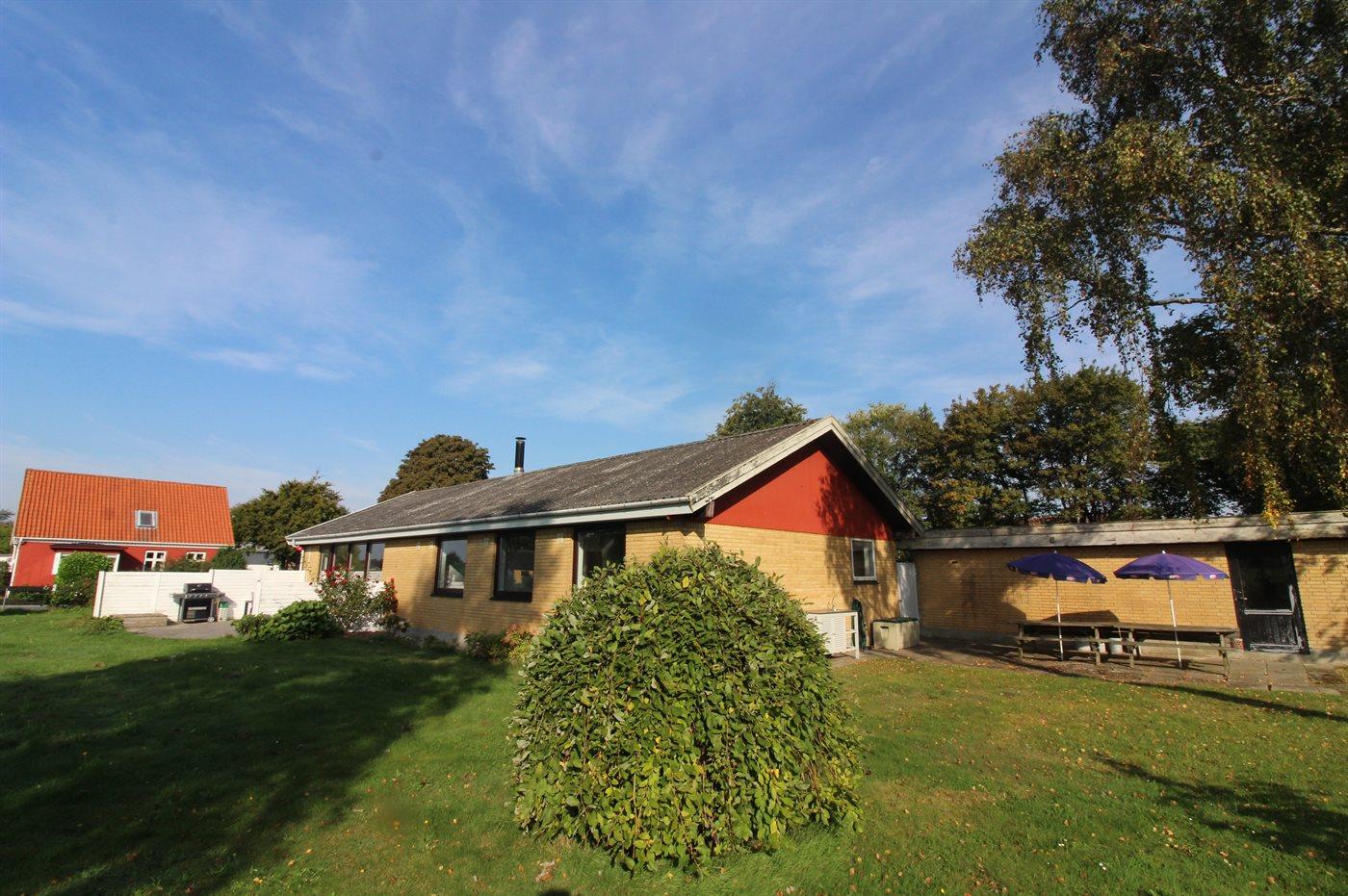 Hyggeligt sommerhus nær Sømarkens sandstrand med brændeovn, varmepumpe og stor naturgrund.