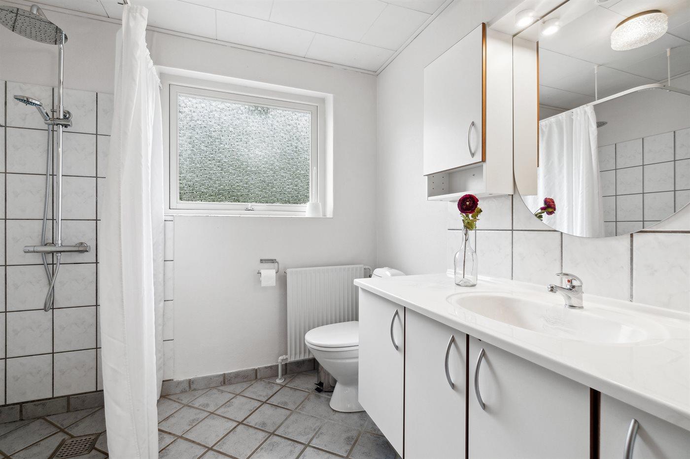 Der er 1 badeværelse med bruser og 2 toiletter, heraf 1 gæstetoilet. Der er gulvvarme på 1 badeværelse.