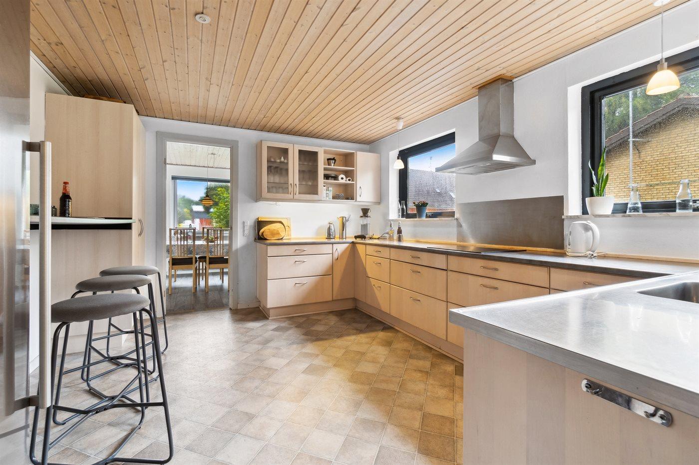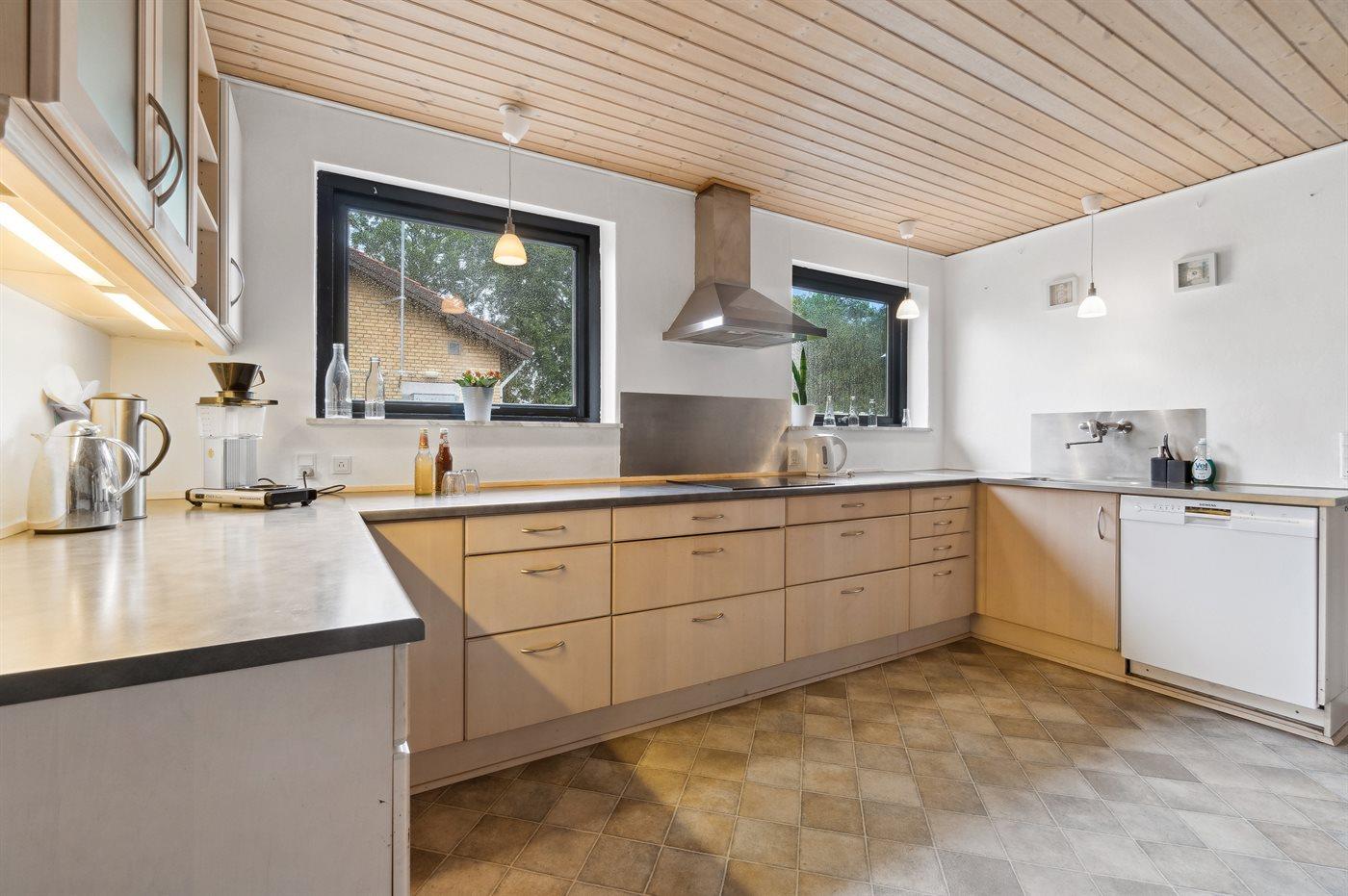 Køkkenet er udstyret med 1 køleskab. Der er 4 keramiske kogeplader, varmluftovn, mikrobølgeovn samt opvaskemaskine.