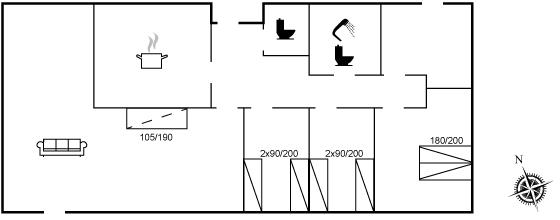 Der er i alt 3 soveværelser. Sovepladserne fordeler sig på: 2 sovepladser i dobbeltseng. 4 sovepladser i enkeltsenge. 1 soveplads i sovesofa (enkelt). 1 af disse sovepladser befinder sig i stuen.