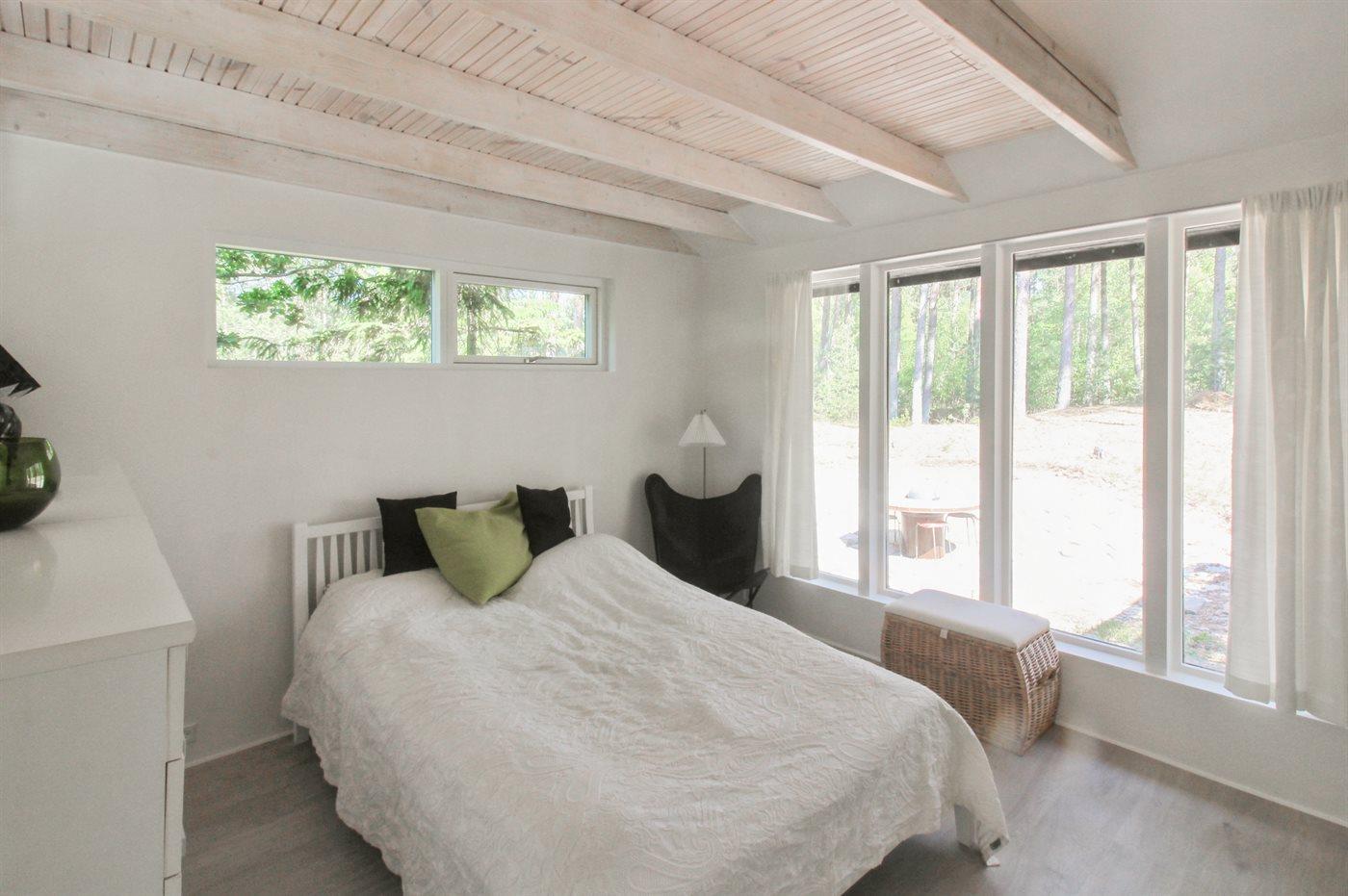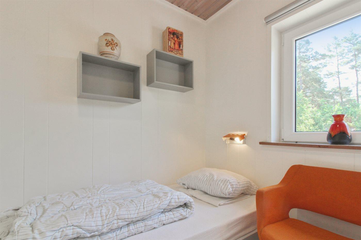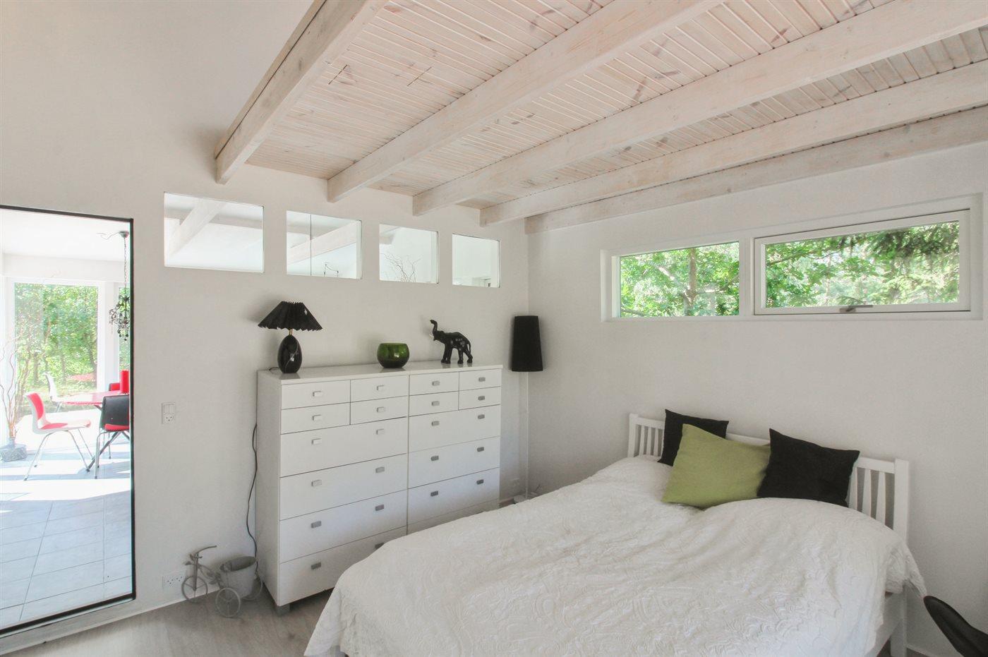 Der er i alt 4 soveværelser. Sovepladserne fordeler sig på: 2 sovepladser i dobbeltseng. 5 sovepladser i enkeltsenge. 2 sovepladser i køjeseng. Derudover er der 1 stk. barneseng.