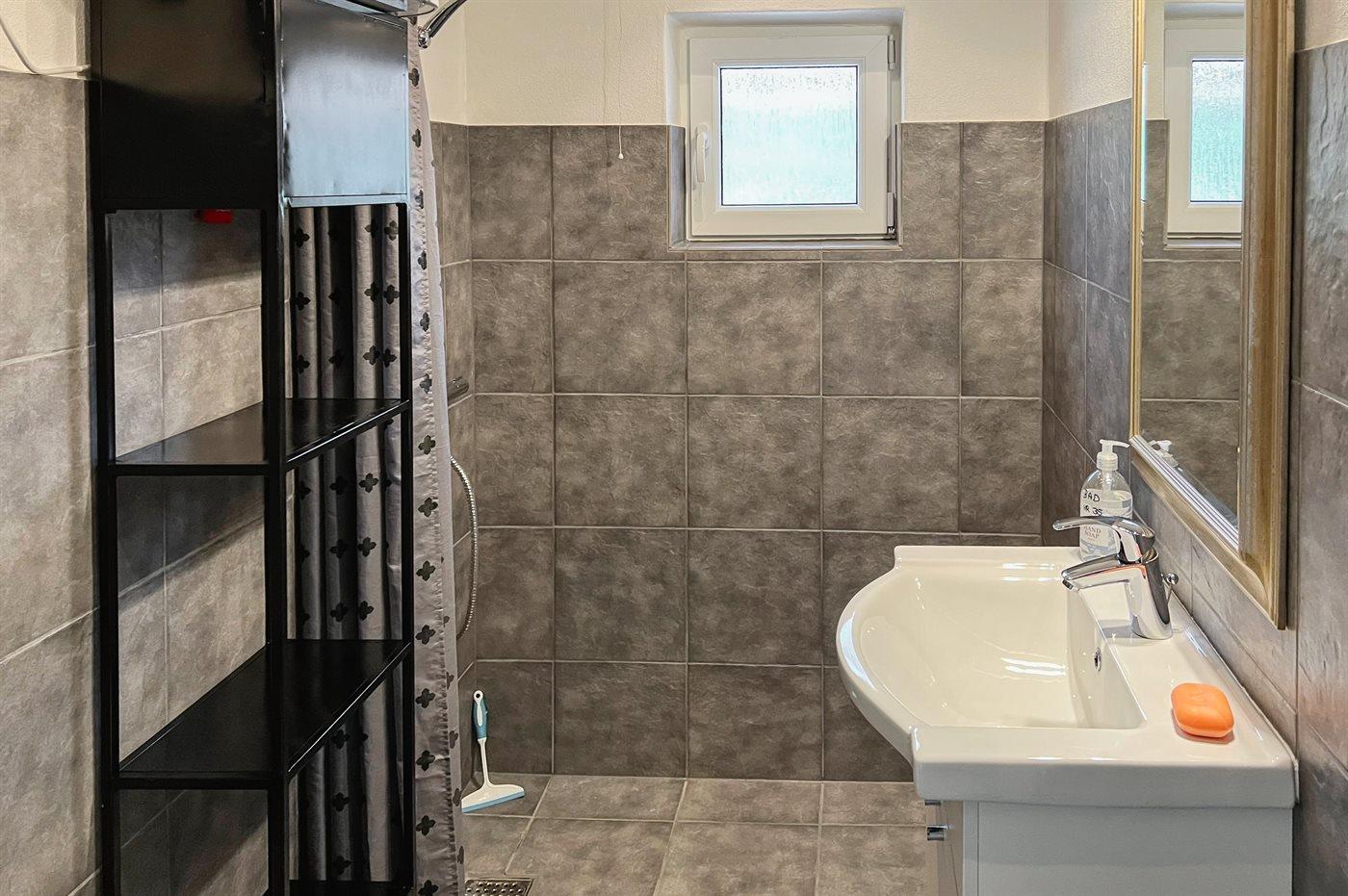 Der er 1 badeværelse med bruseniche og 1 toilet.