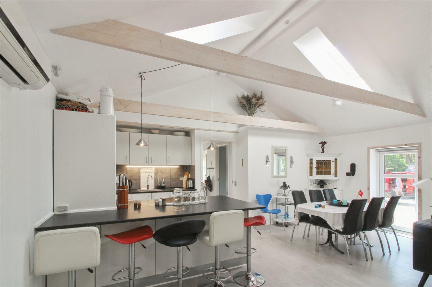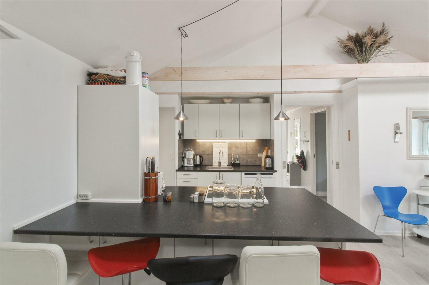 Køkkenet er udstyret med 3 køleskabe. Der er 4 keramiske kogeplader, varmluftovn, mikrobølgeovn samt opvaskemaskine.