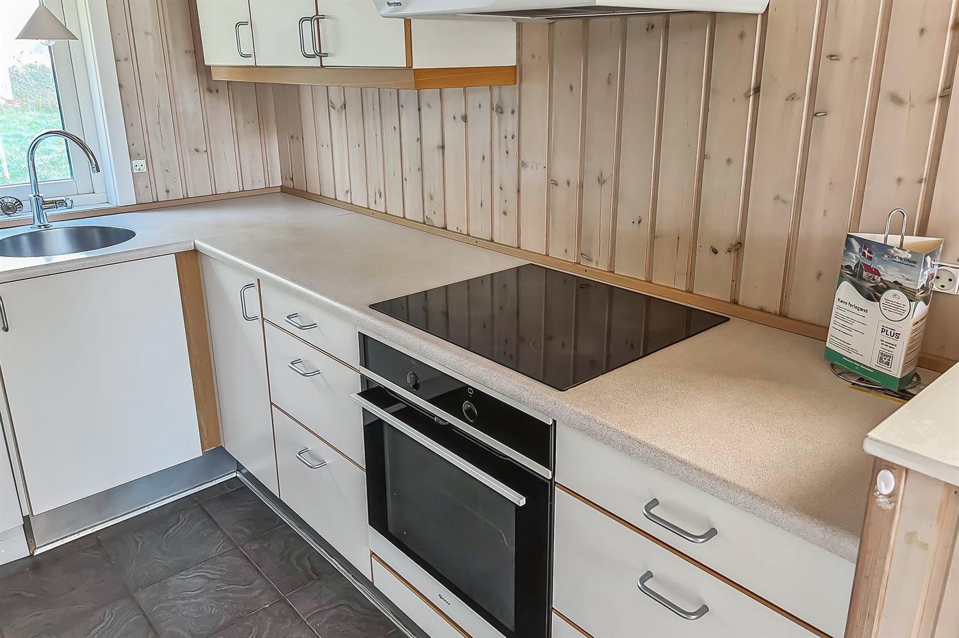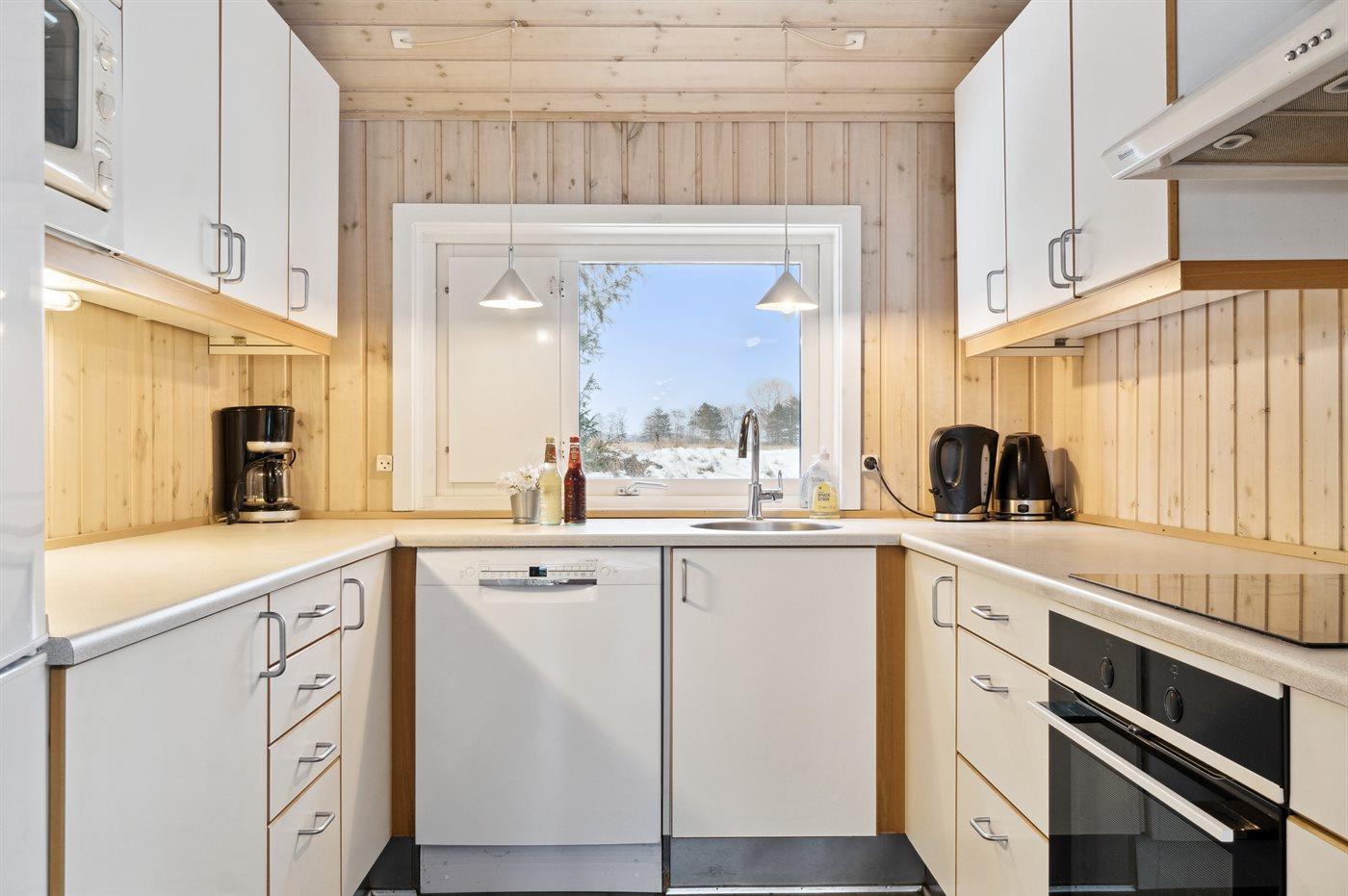 Køkkenet er udstyret med 1 køleskab. Der er 4 keramiske kogeplader, varmluftovn, mikrobølgeovn samt opvaskemaskine.