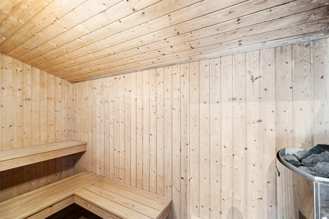Der er 2 badeværelser med bruseniche og 2 toiletter. Der er gulvvarme på 2 badeværelser. I saunaen er der mulighed for afslapning.