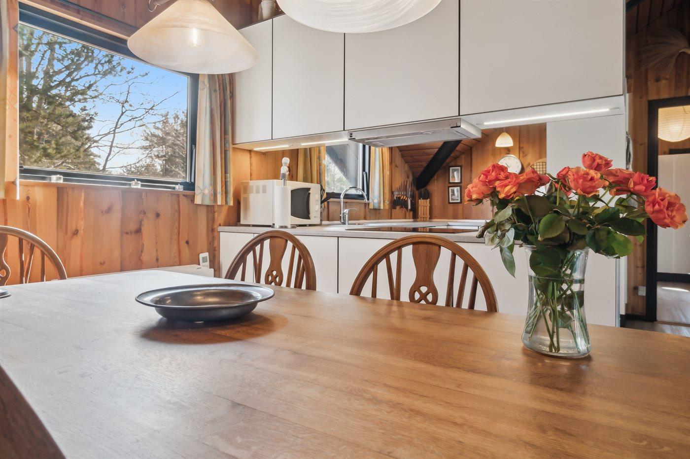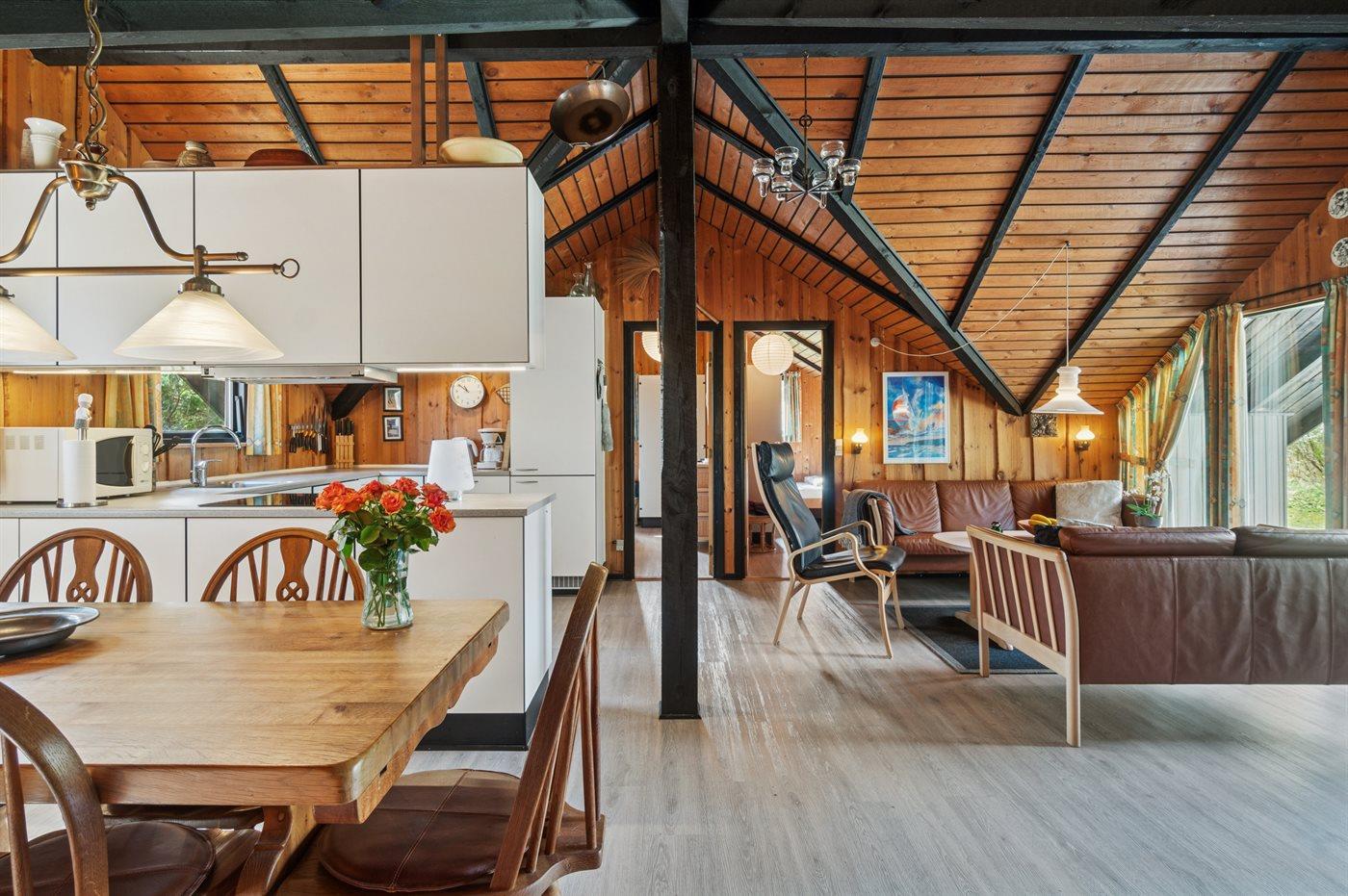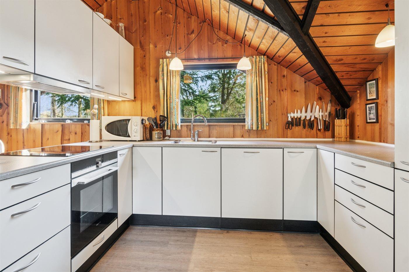 Køkkenet er udstyret med 1 køleskab. Der er 4 induktionskogeplader, varmluftovn, mikrobølgeovn samt opvaskemaskine.