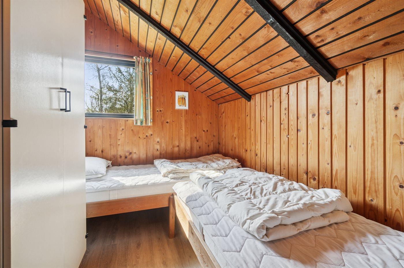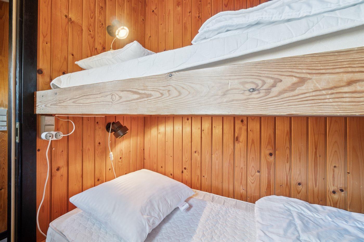 Der er i alt 3 soveværelser. Sovepladserne fordeler sig på: 2 sovepladser i dobbeltseng. 2 sovepladser i enkeltsenge. 2 sovepladser i køjeseng.