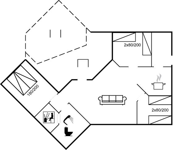 Der er i alt 3 soveværelser. Sovepladserne fordeler sig på: 2 sovepladser i dobbeltseng. 4 sovepladser i enkeltsenge. Derudover er der 1 stk. barneseng.