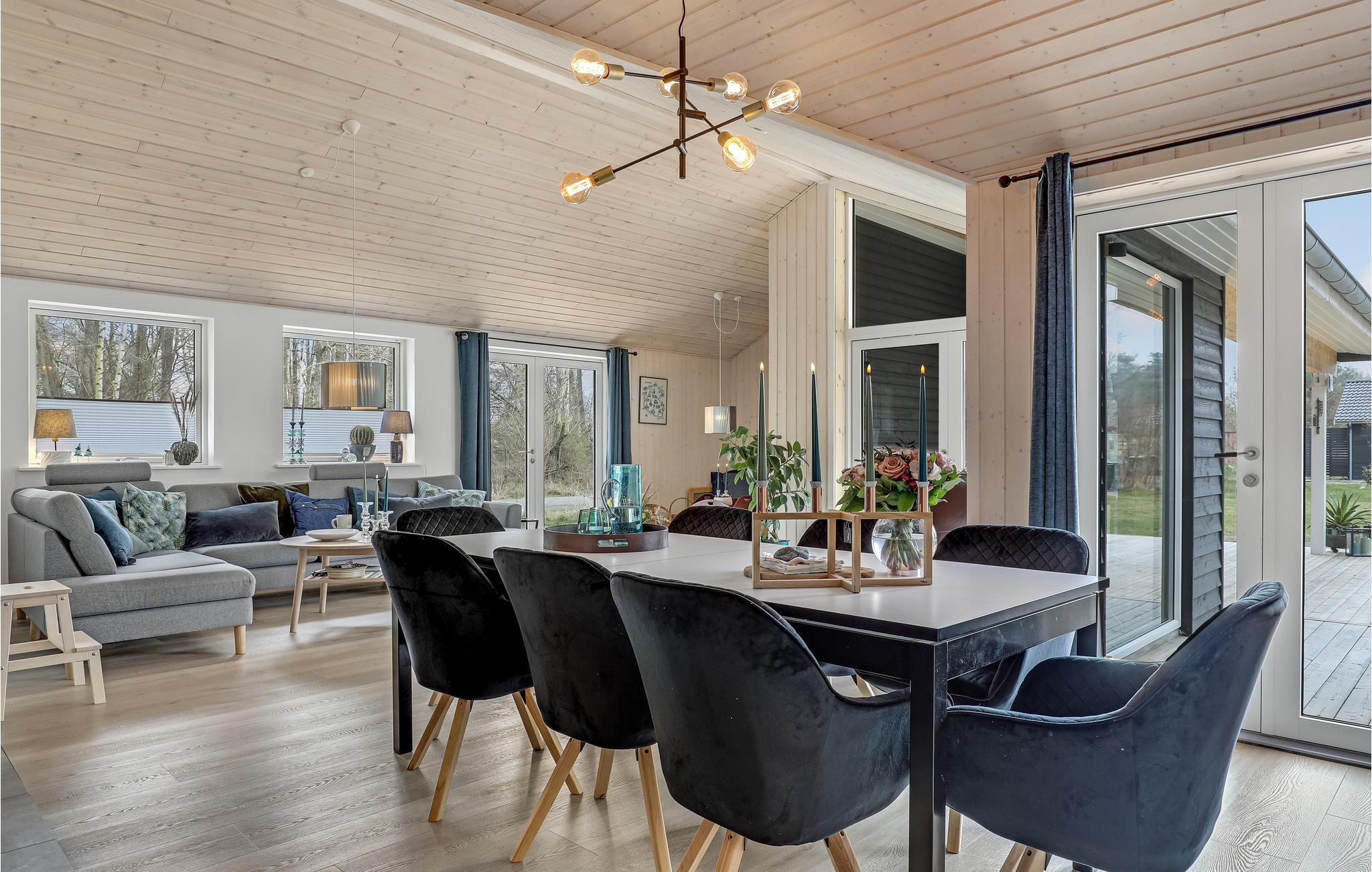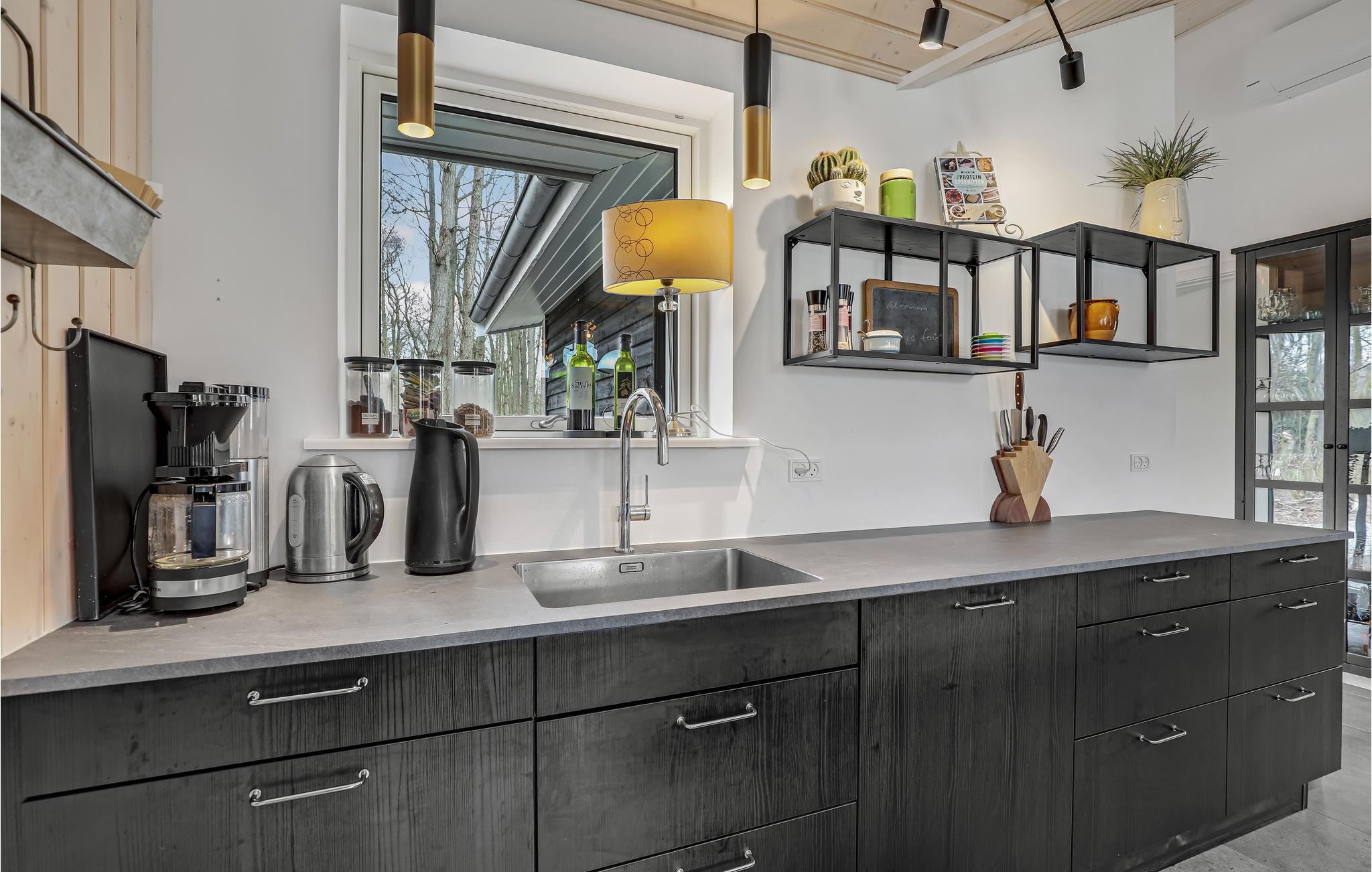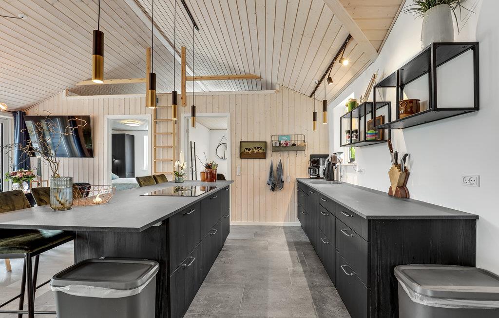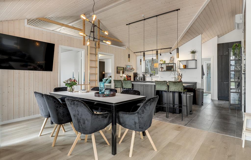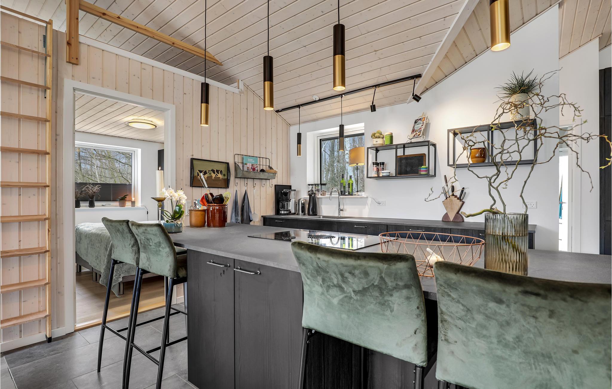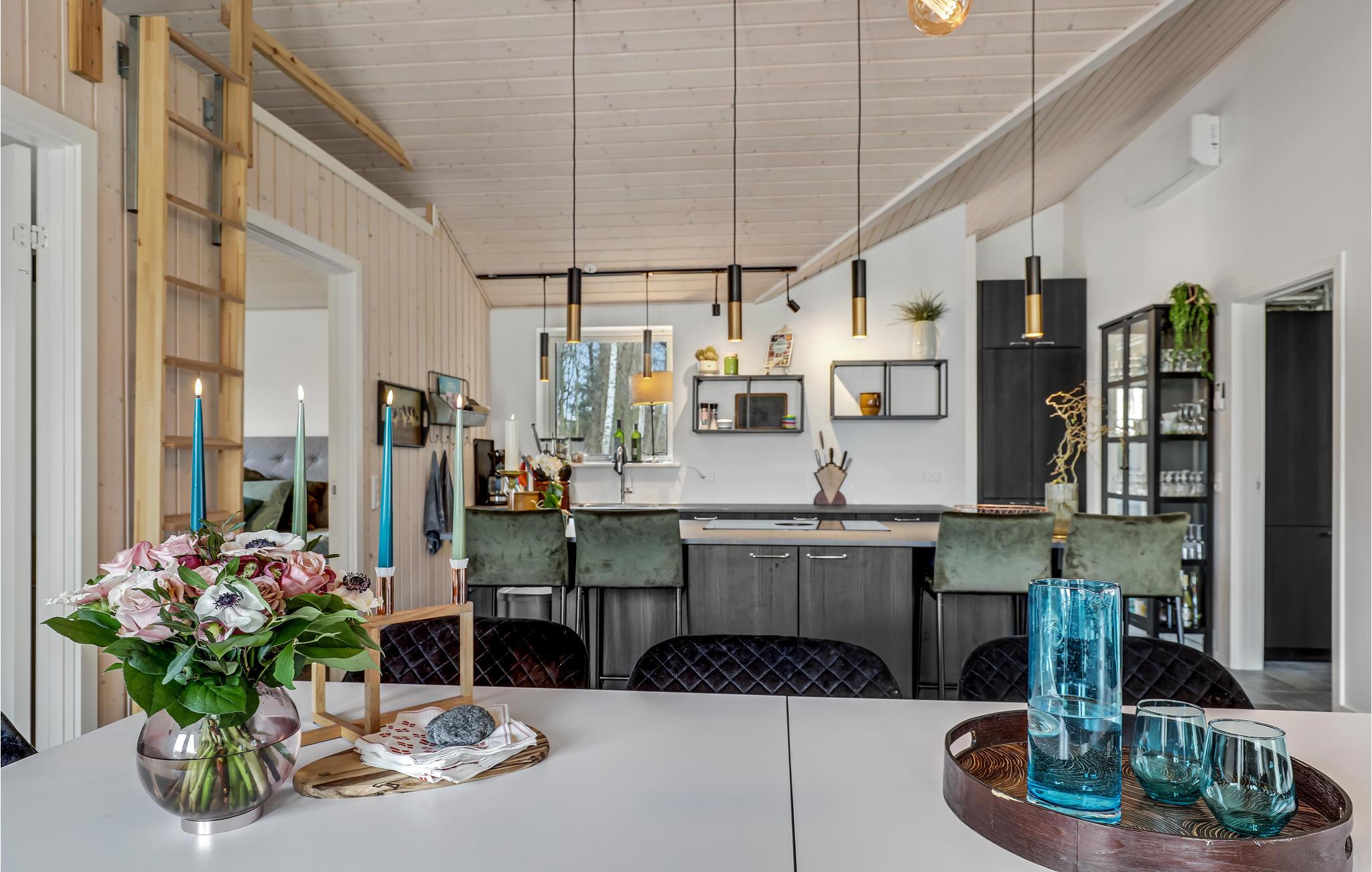 Hvis I drømmer om en ferie med sol, frisk luft og badning, så får I den perfekte placering i dette hus. Spiller I oven i løbet golf, og har planer om at være turister på Bornholm, får I også et godt udgangspunkt til det. Boligen er stilren og moderne i sorthvide kontraster med enkelte afdæmpede farveindslag, og huset er indrettet med mange hyggelige kroge, hvor man kan samles eller nyde en alenestund med en god bog. Den lyse opholdsstue har en skøn udsigt over skoven og bliver rammen om en stor del af jeres timer sammen, for her kommer tiden til at gå med madlavning, måltider og afslappende aktiviteter efter en lang dag på farten.