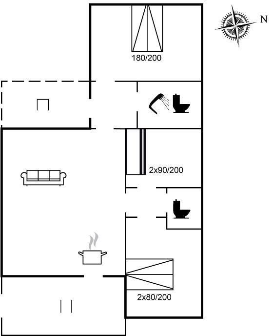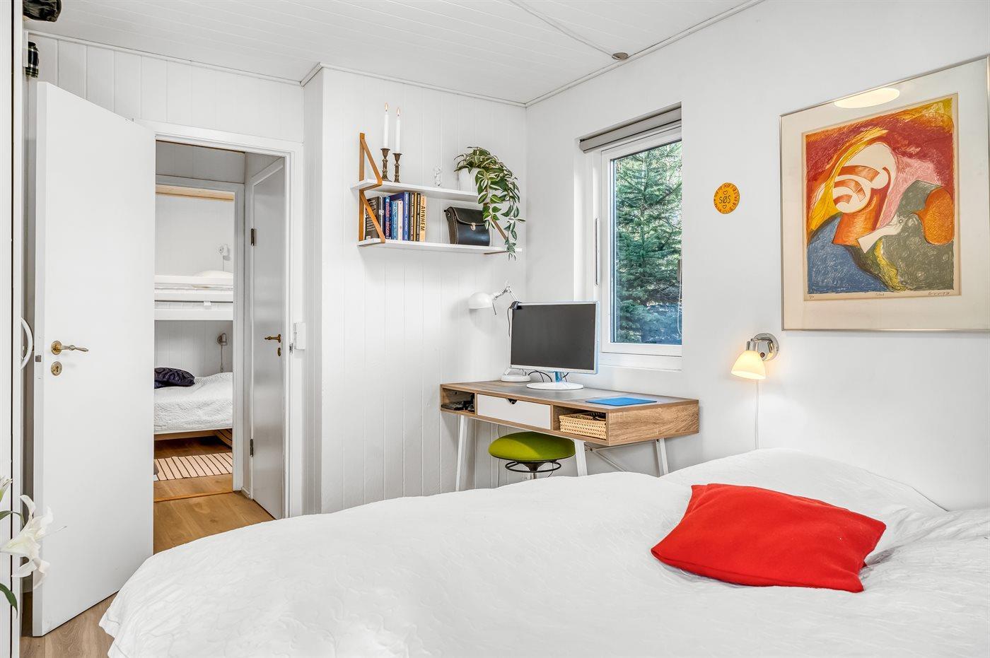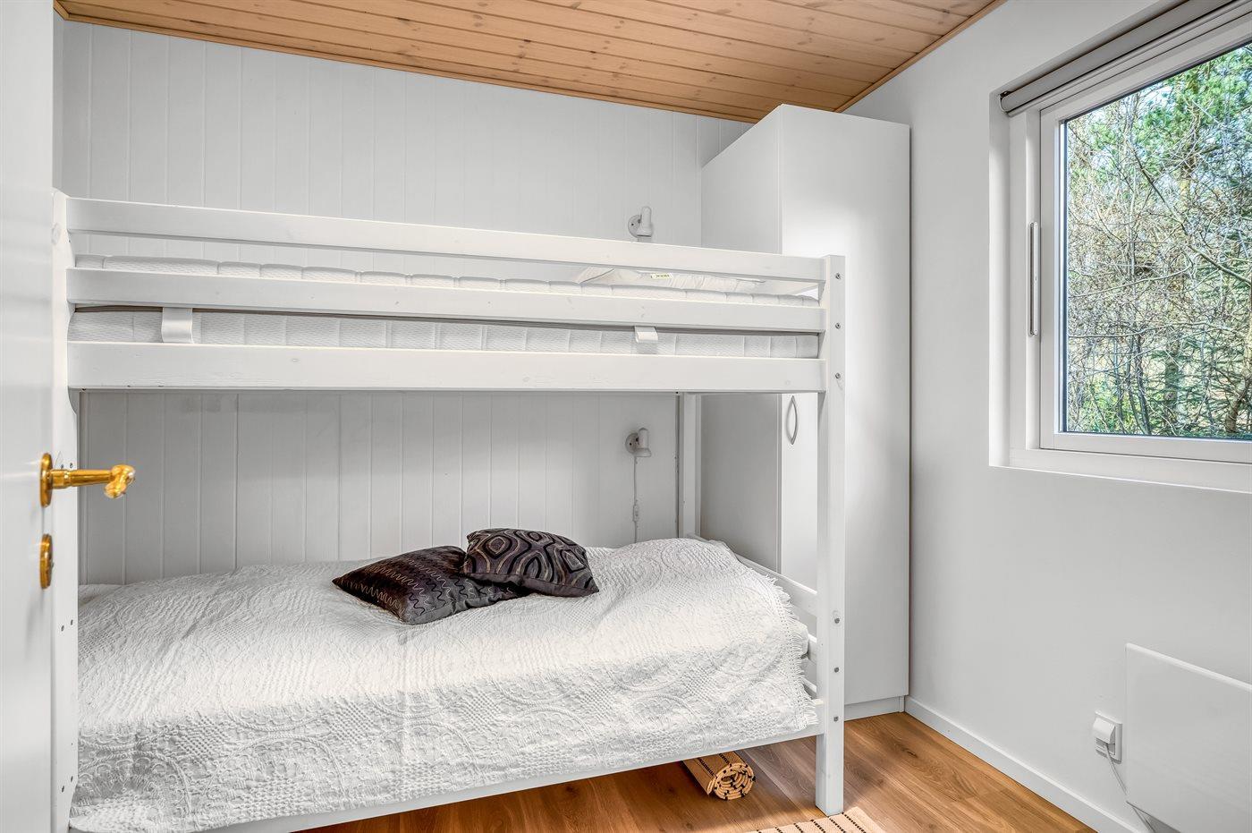Der er i alt 3 soveværelser. Sovepladserne fordeler sig på: 4 sovepladser i dobbeltsenge. 2 sovepladser i køjeseng. Derudover er der 1 stk. barneseng.