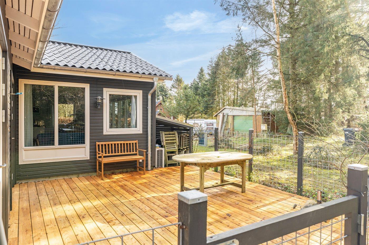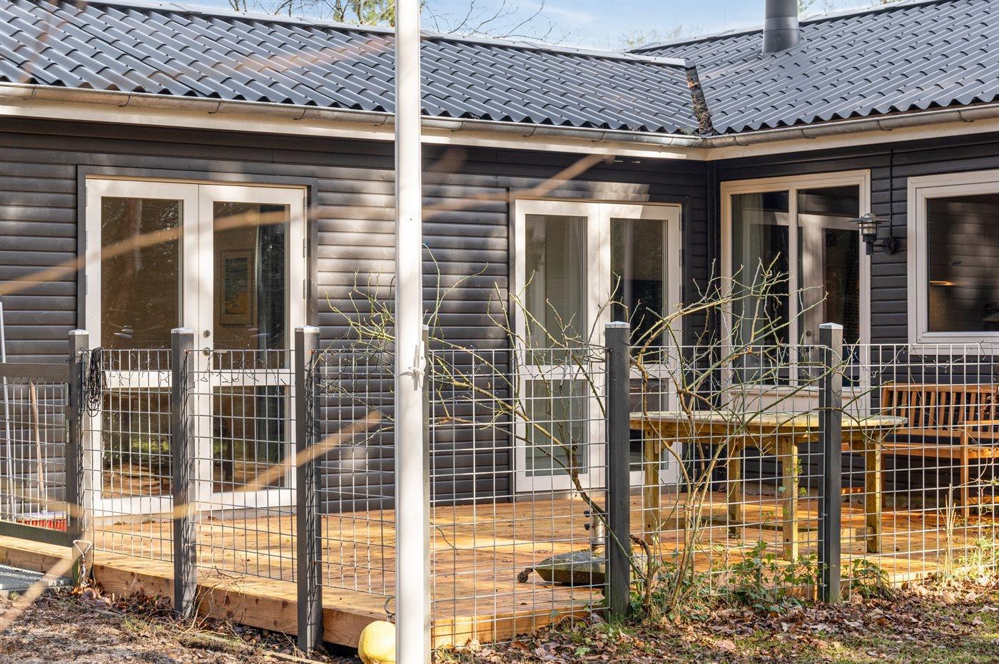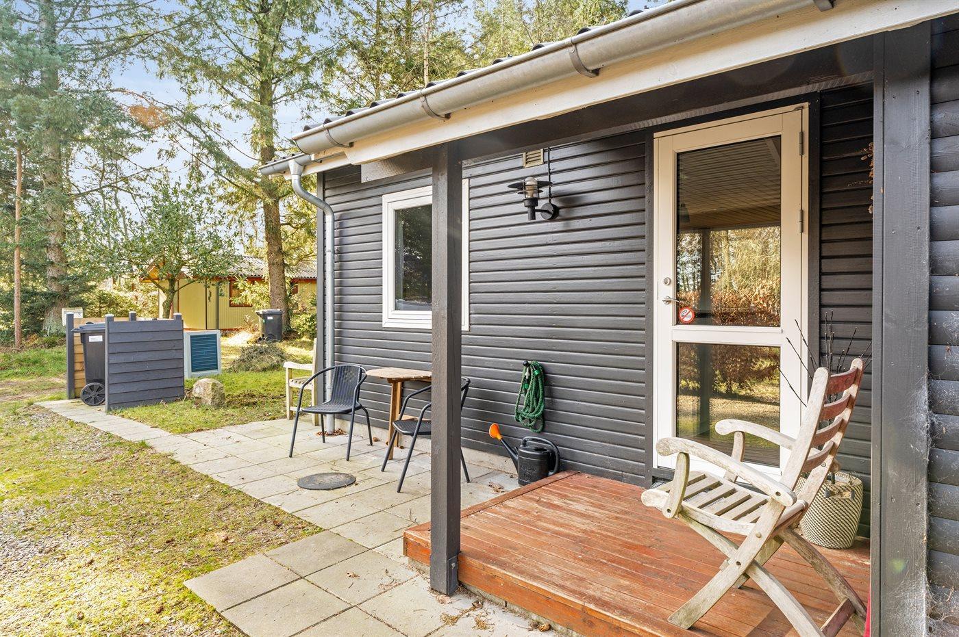 Ferieboligen er beliggende på en 1300 m² stor naturgrund. Der er 36000 m til havet. Der er 250 m til fjorden. Der er en badebro i nærheden. Nærmeste forretning er beliggende i en afstand af 5000 m. Der er en golfbane i en afstand af 15000 m. Til ferieboligen hører 30 m² lukket terrasse. Gynge. Udendørs bruser. Grill til rådighed. Der er installeret stik til opladning af elbil (ladekabel skal medbringes). Parkering ved ferieboligen.