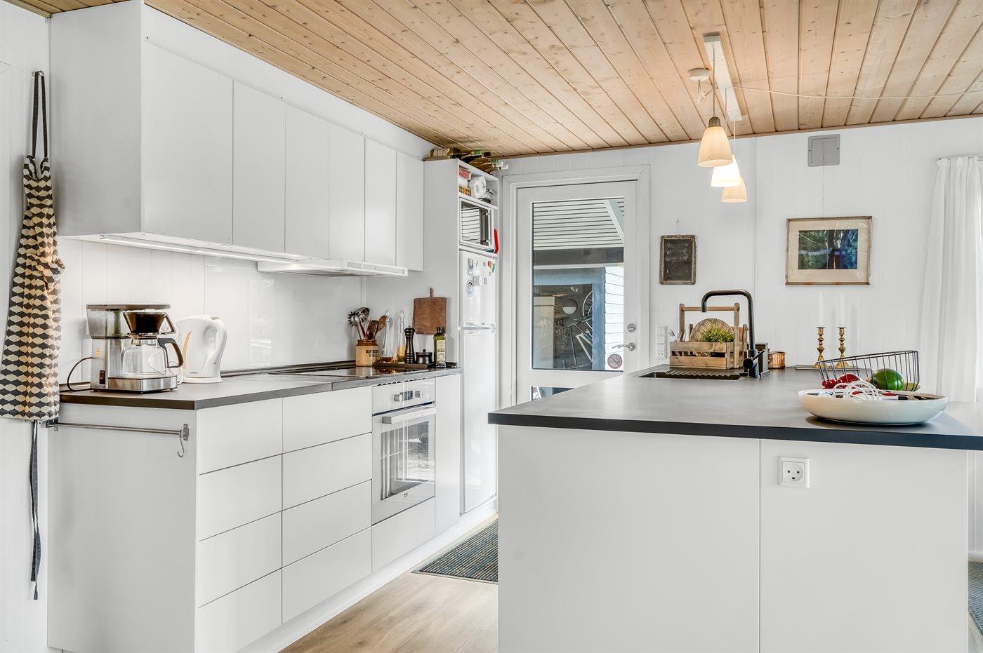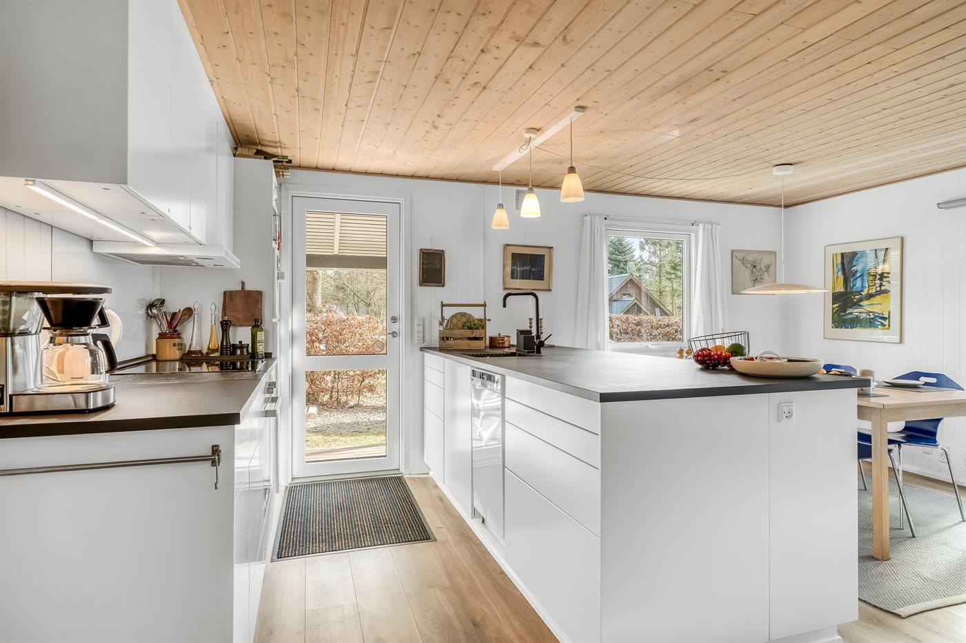 Køkkenet er udstyret med 1 køleskab. Der er 4 induktionskogeplader, varmluftovn, mikrobølgeovn samt opvaskemaskine.