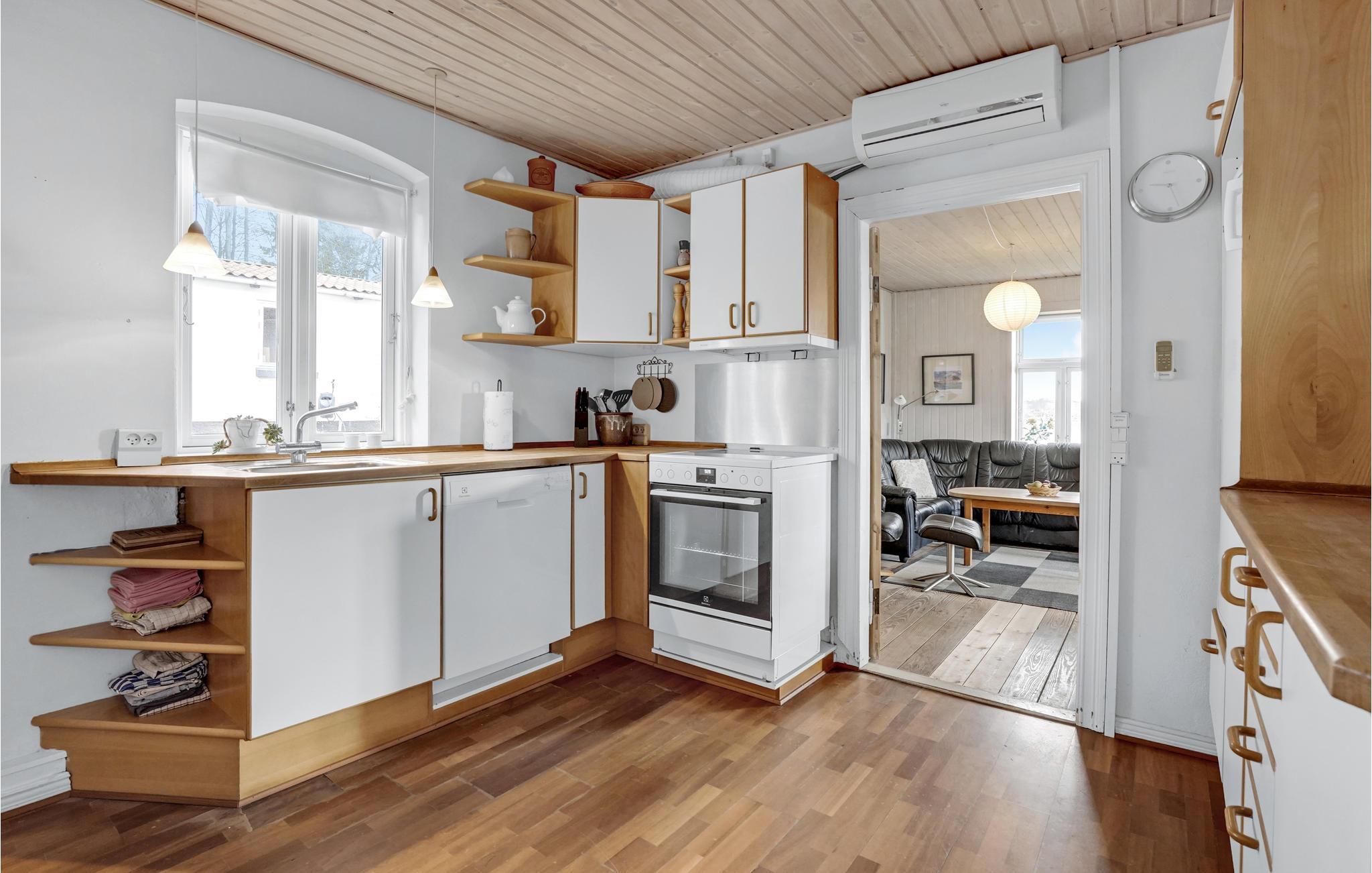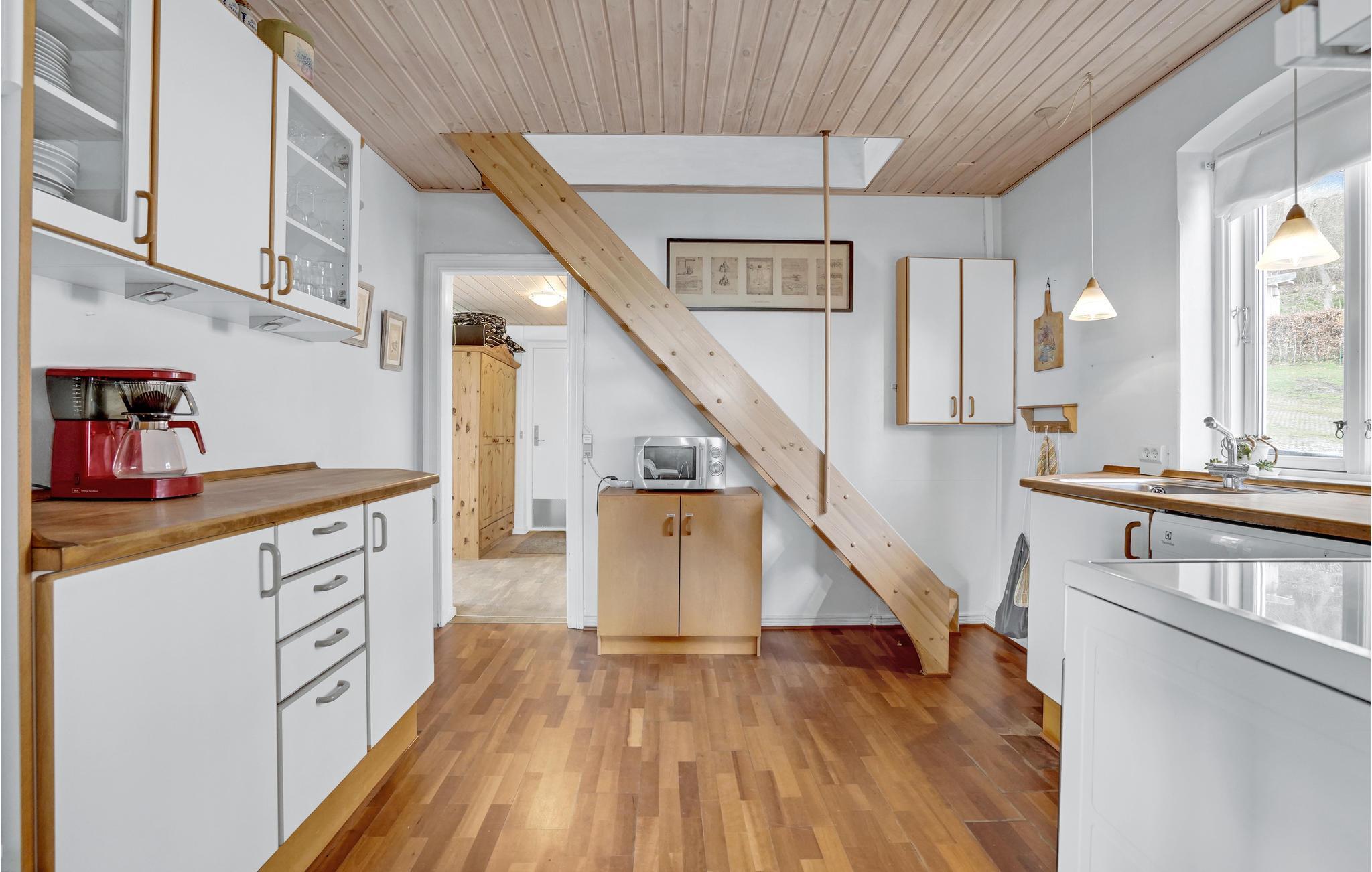 På en dejlig grund kun 50 m fra vandet, ligger dette hyggelige feriehus med en flot panoramaudsigt fra stuen og terrassen. Huset er lyst og personligt indrettet, der er sovepladser i stueetagen, et stort soveværelse på 1. sal samt sovepladser på reposen, hvor der også er en lille legehule til børnene. Fra spisestuen og det ene soverum er der udgang til terrassen, hvor I kan sidde og drikke en kop kaffe, mens I nyder havudsigten. Feriehuset har egen røgeovn, så dagens fangst kan røges på stedet.