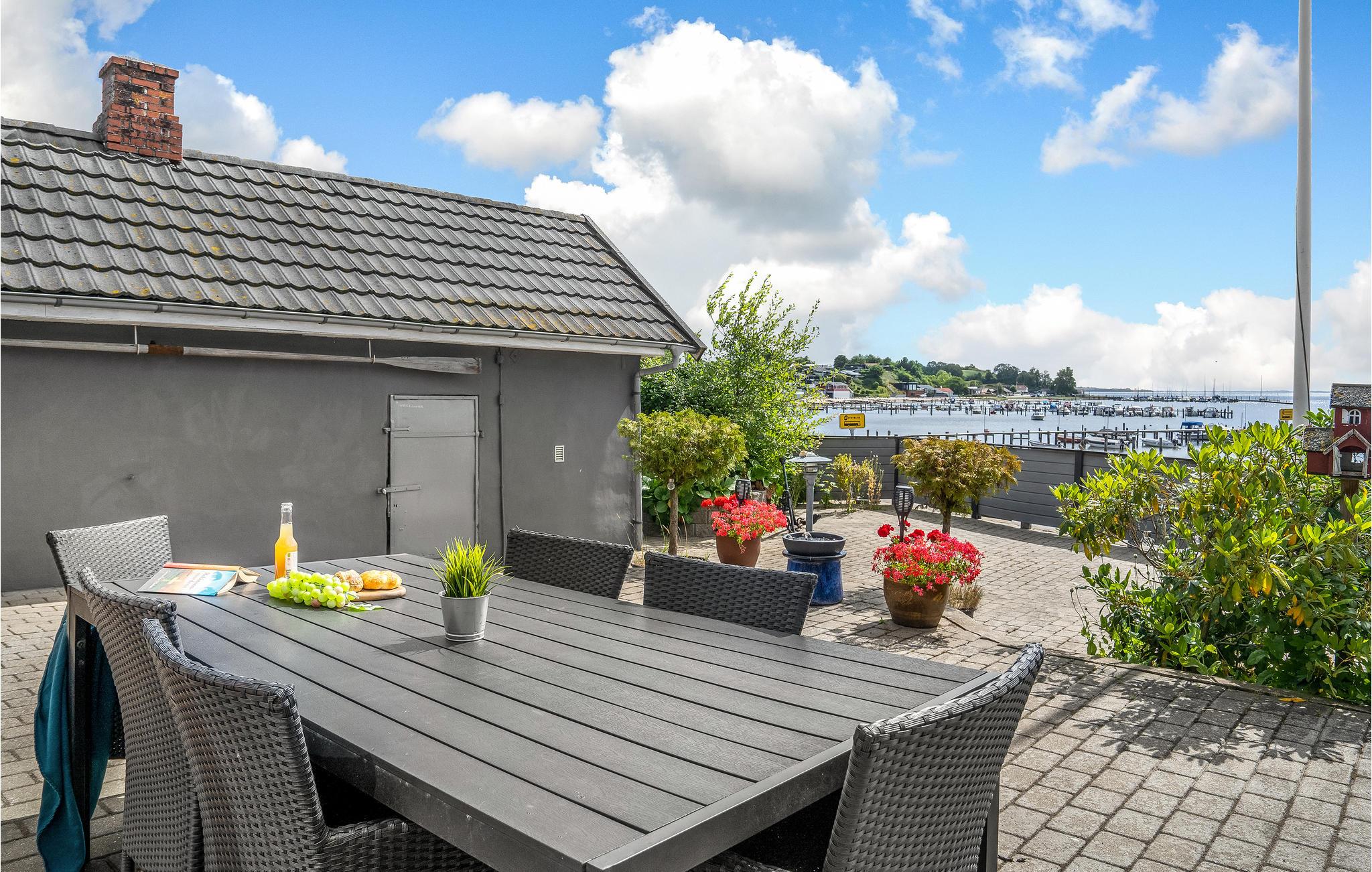 I har en dejlig udsigt ud over det blanke hav i Genner Bugt. Den nyder I bedst fra terrassen, hvor I kan lade dagen gå på hæld med et lækkert grillmåltid og et køligt glas vin.