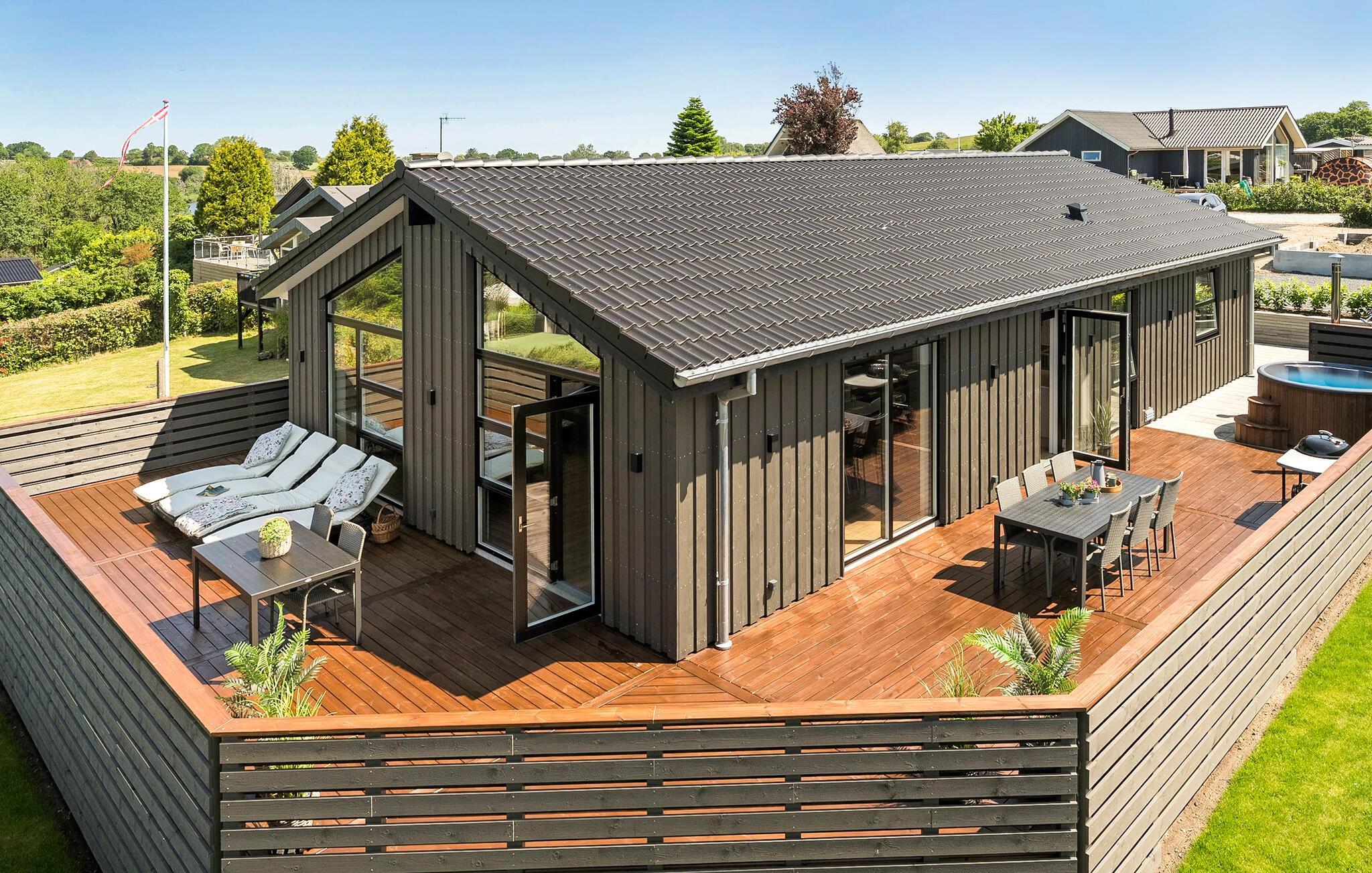 Moderne feriehus ved Sønderballe Strand med vildmarksbad, stor terrasse og kort afstand til vandet.