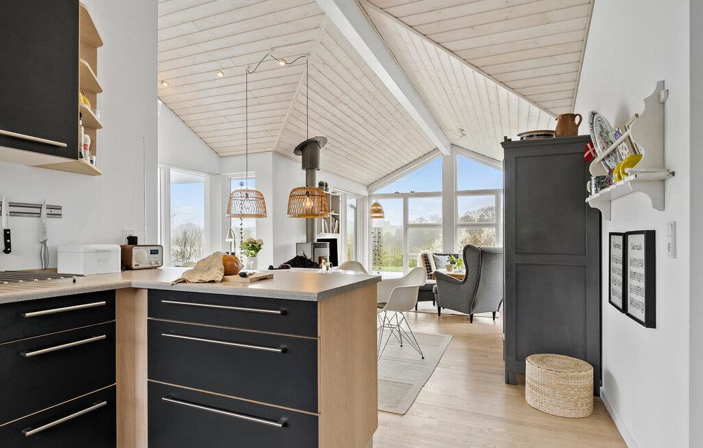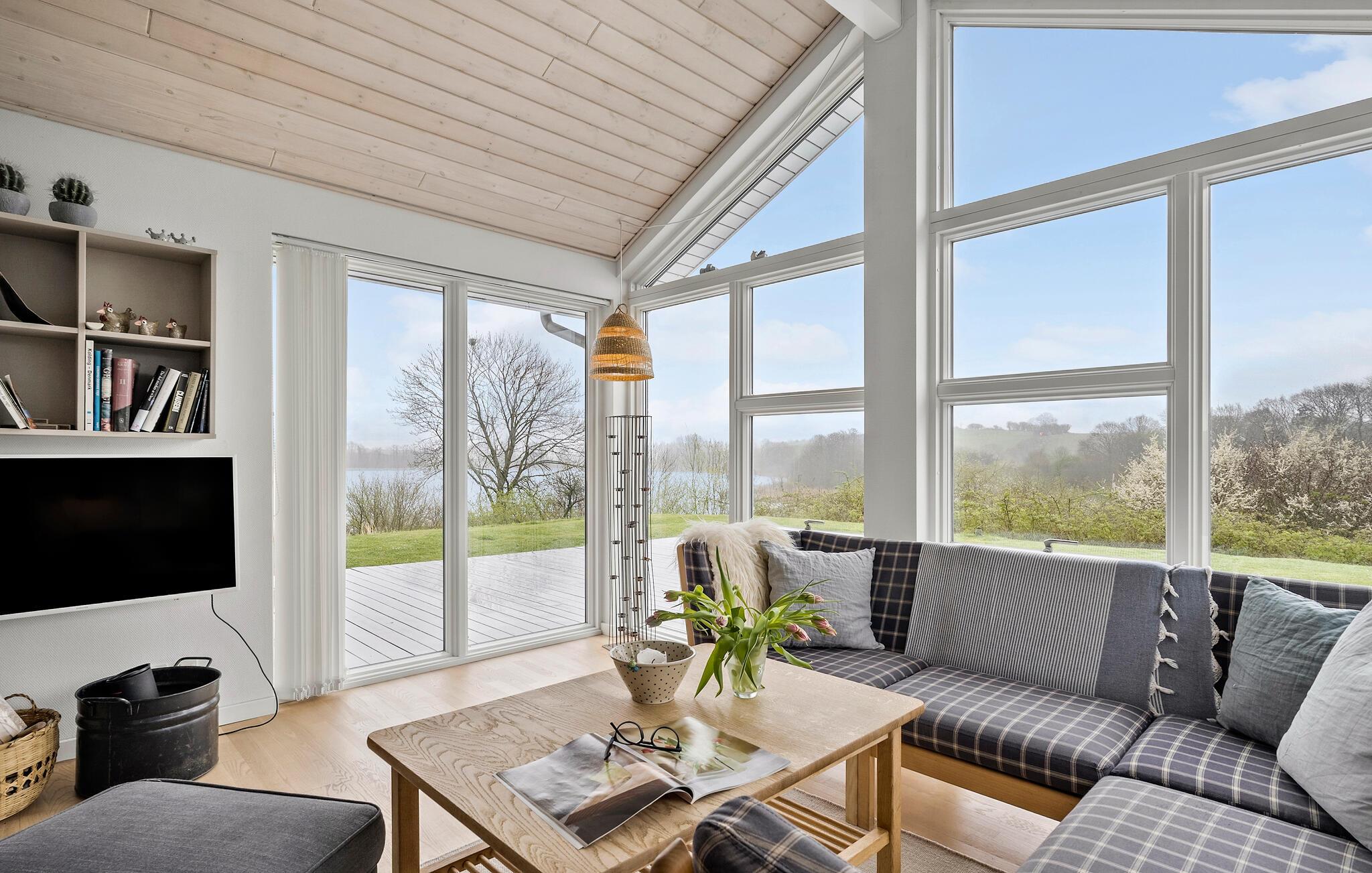 Nyd en skøn ferie i et lyst og indbydende træhus med panoramaudsigt ved Sønderballe Strand og Genner Bugt.