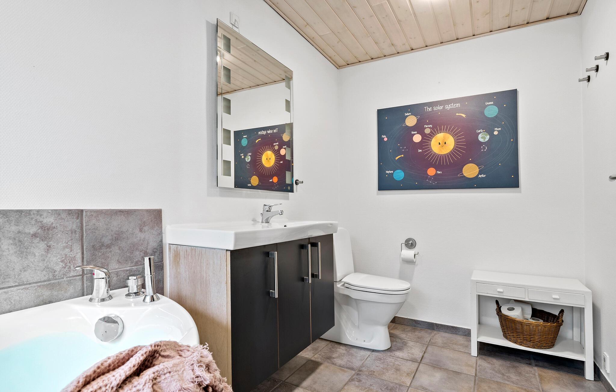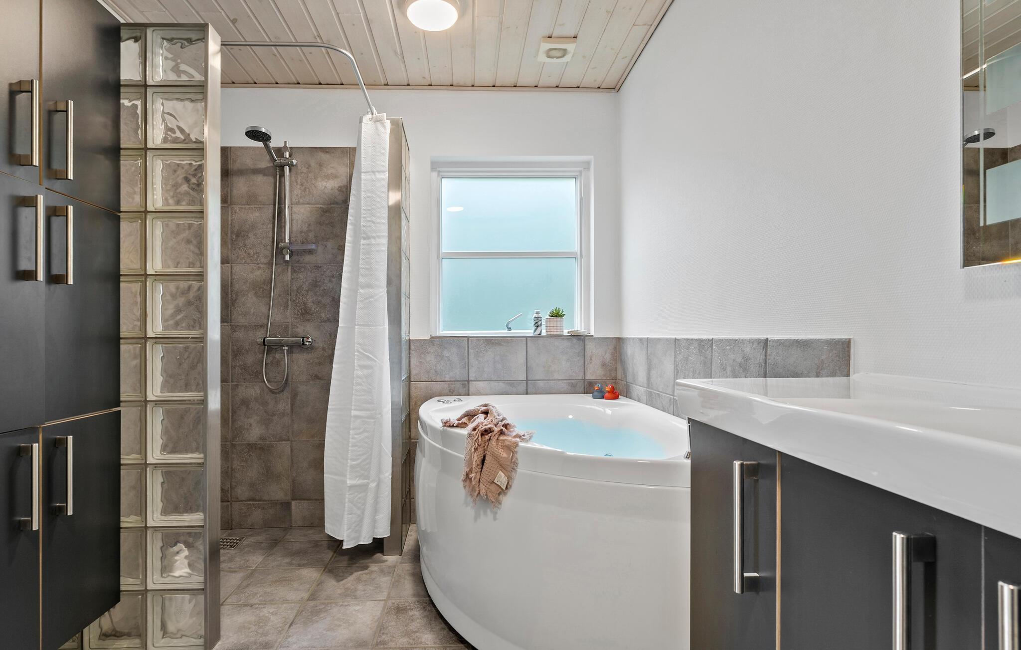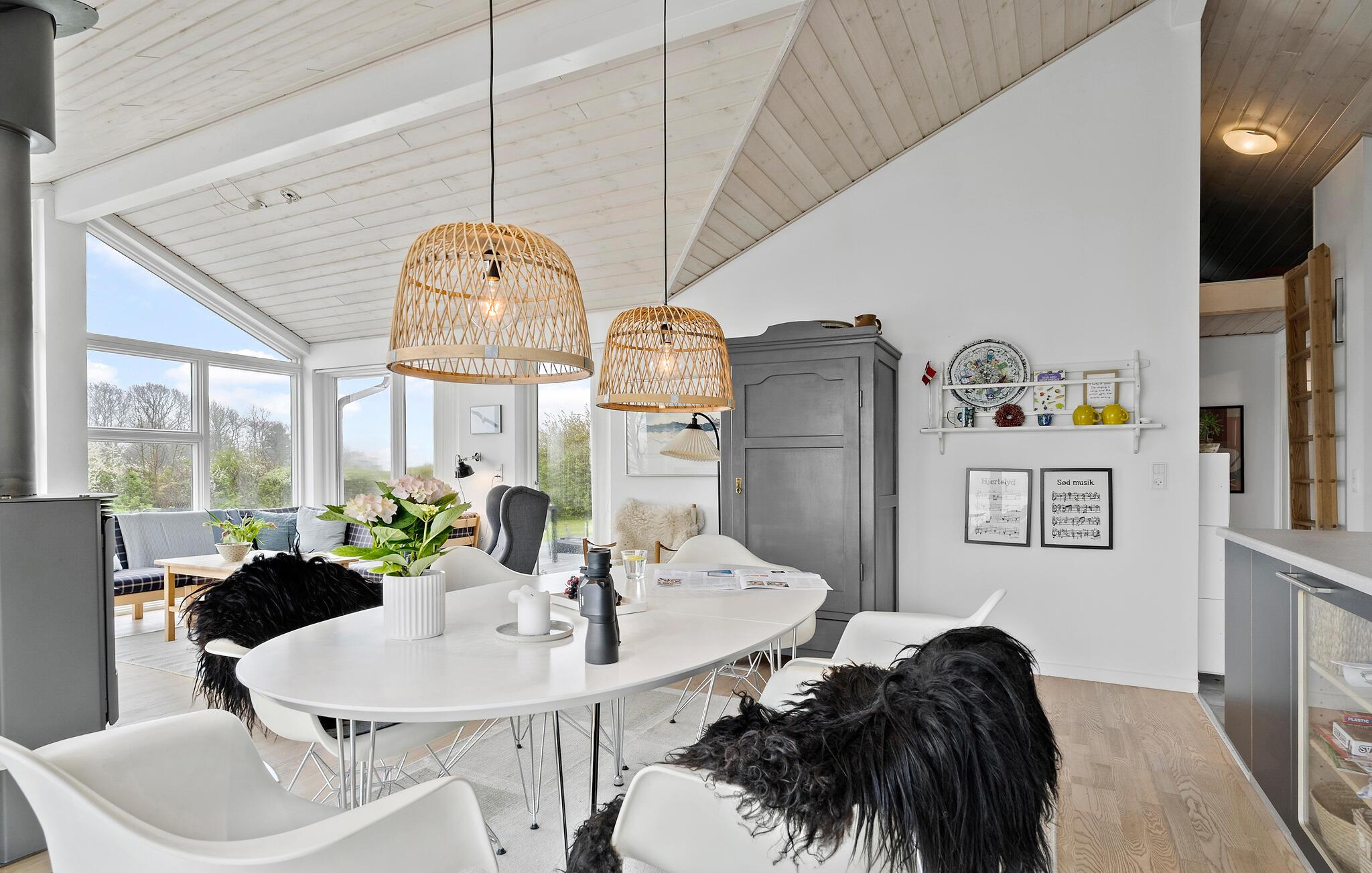 Velkommen til dette attraktive hus, der ligger en kort gåtur fra Sønderballe Strand, og hvor I får den ideelle base for en skøn familieferie ved vandet. Huset er nydeligt indrettet med åbent boligkoncept, højt til loftet og store vinduespartier, der giver det indre et lyst og luftigt udtryk og gør det nemt at slappe af med det samme, I ankommer. Er vejret til den lidt mere grå side, kan I tænde op i brændeovnen, der giver varme og et knitrende lydtapet til madlavningen i det veludstyrede køkken og brætspil ved spisebordet med udsigt til omgivelserne. Og måske I skal forkæle jer selv med en aftentur for to i boblebadet?