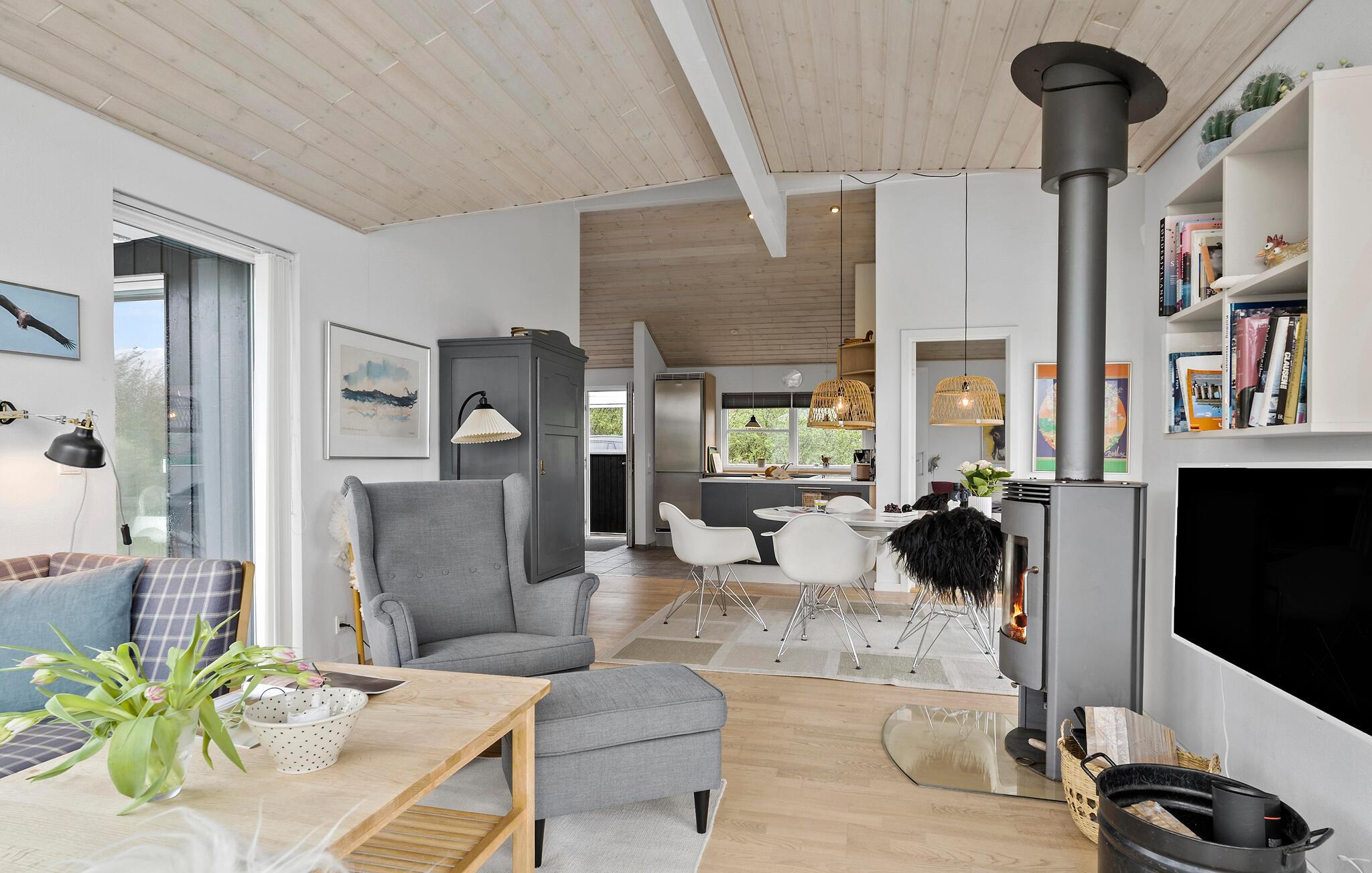 Årets ferie venter jer i dette indbydende hus med en stor træterrasse og smuk udsigt over Genner Bugt.