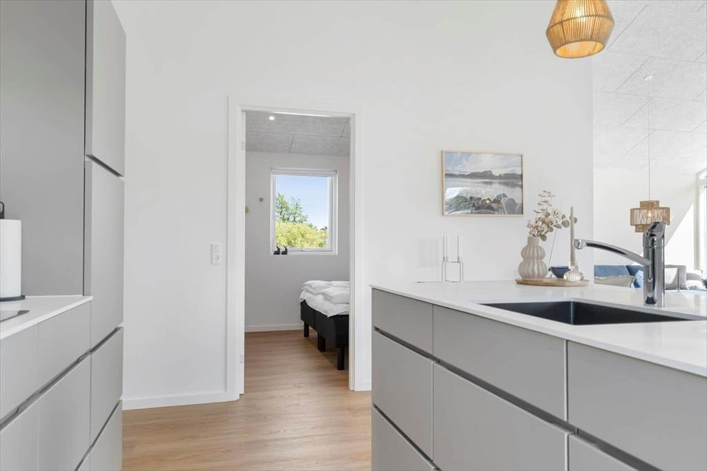 Hvis du elsker moderne arkitektur, lækkert design og smukke naturomgivelser, er dette skønne sommerhus ved Sønderballe Strand lige noget for dig. Huset er en fryd for øjet, for det er et vaskeægte kvalitetsbyggeri fra 2024, der imponerer med lyse rum, store vinduespartier og stilfuldt interiør. Også beliggenheden er perfekt, for huset ligger kun 50 meter fra vandkanten og har en betagende udsigt til Hopsø.