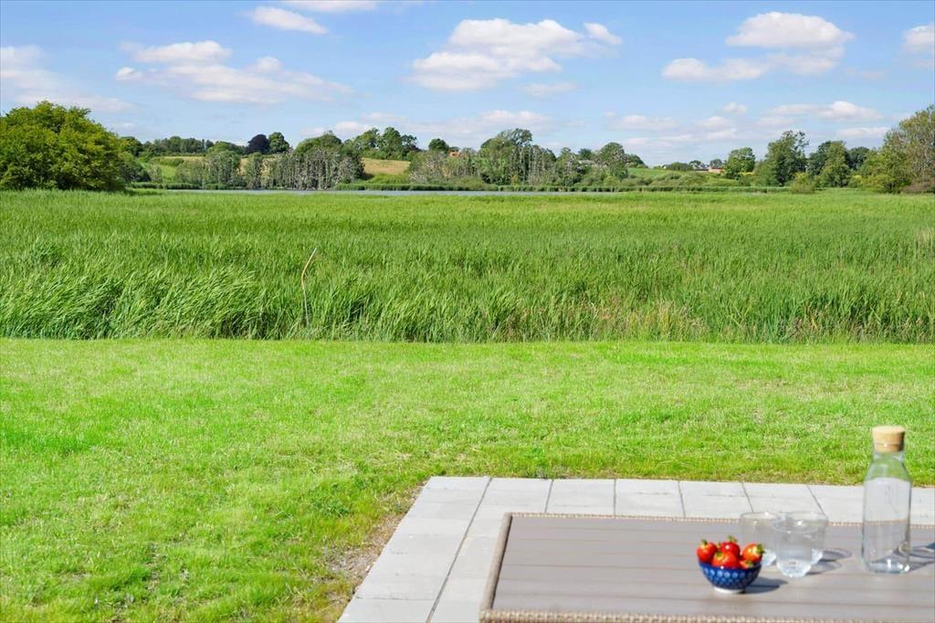 Grunden er helt enkelt anlagt med en god græsplæne, et stort terrasseområde og en holdeplads til en eller flere biler. Mod nord kan du se langt ud over det åbne landskab med Hopsø et stykke væk, og du kan også nyde synet af Genner Bug, så der er altid noget kønt at kigge på– uanset om du spiller havespil med familien, er i gang med at grille eller bare slapper af. Terrassen byder på flere gode solkroge og dejlige opholdspladser, og der er havemøbler, liggestole og en parasol til rådighed, så du kan se frem til mange skønne stunder i det fri.