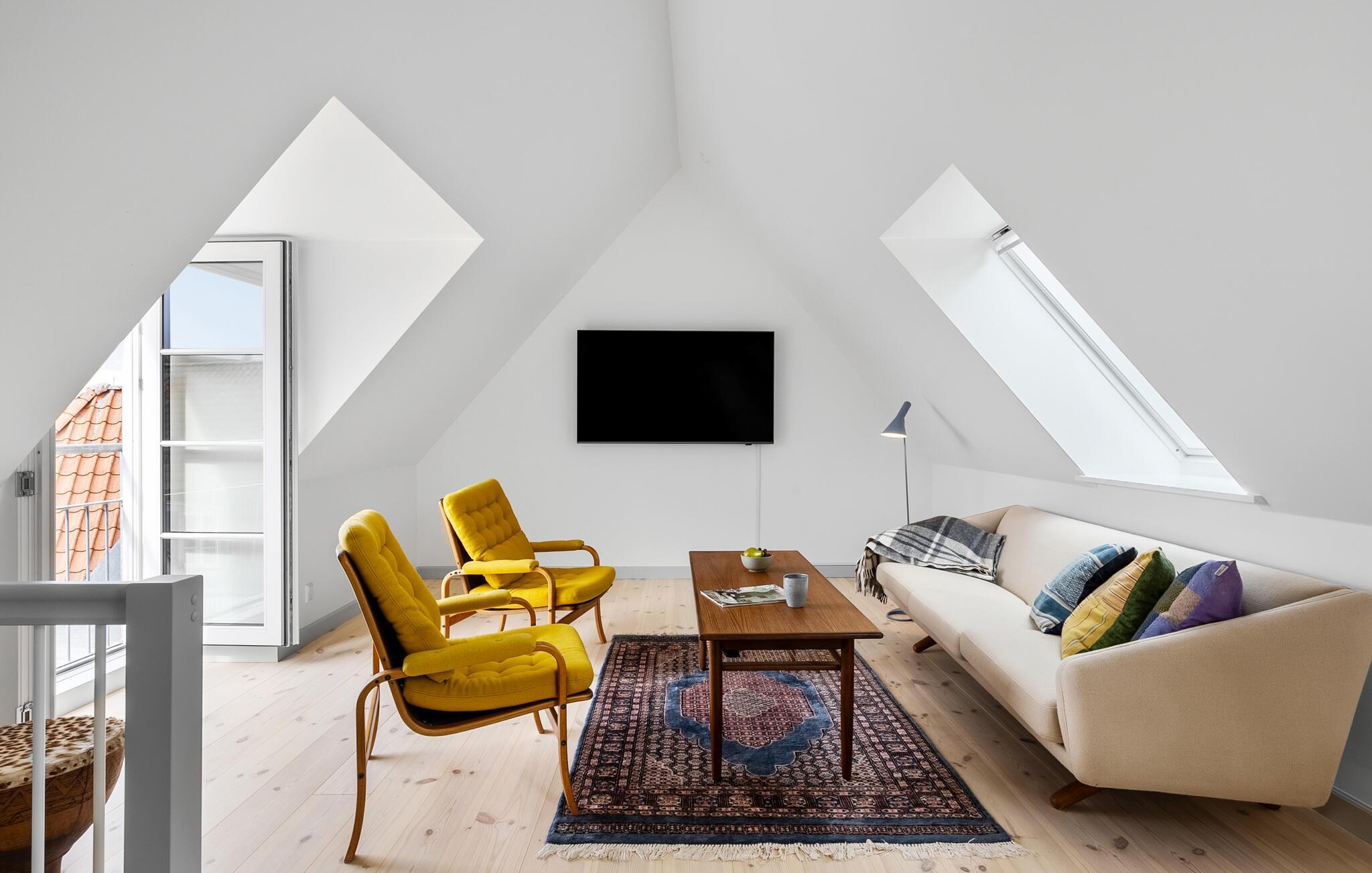 Brug den lille terrasse til at nyde morgensolen med en kop kaffe. Lad blikket glide over byens tage, og opdag det bakkede landskab i det fjerne. Den centrale beliggenhed gør det nemt at forme dagen, præcis som I ønsker – hvad enten det er med hyggelige stunder i huset eller spændende oplevelser ude i byen.