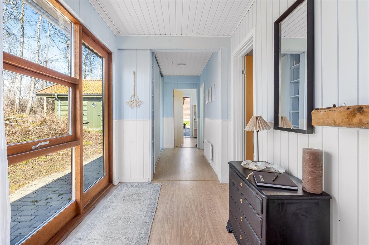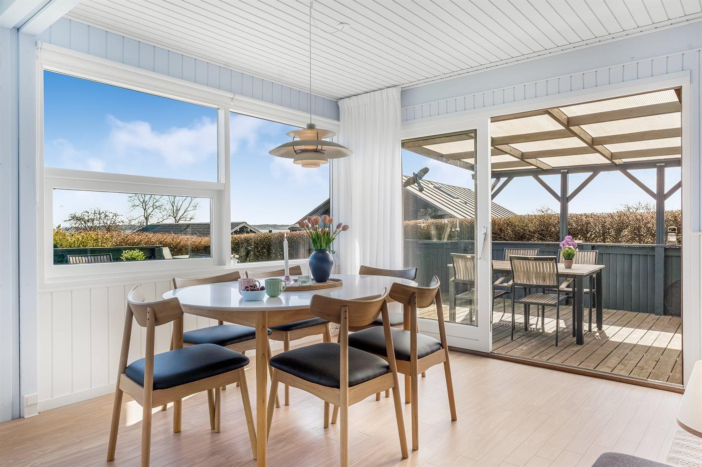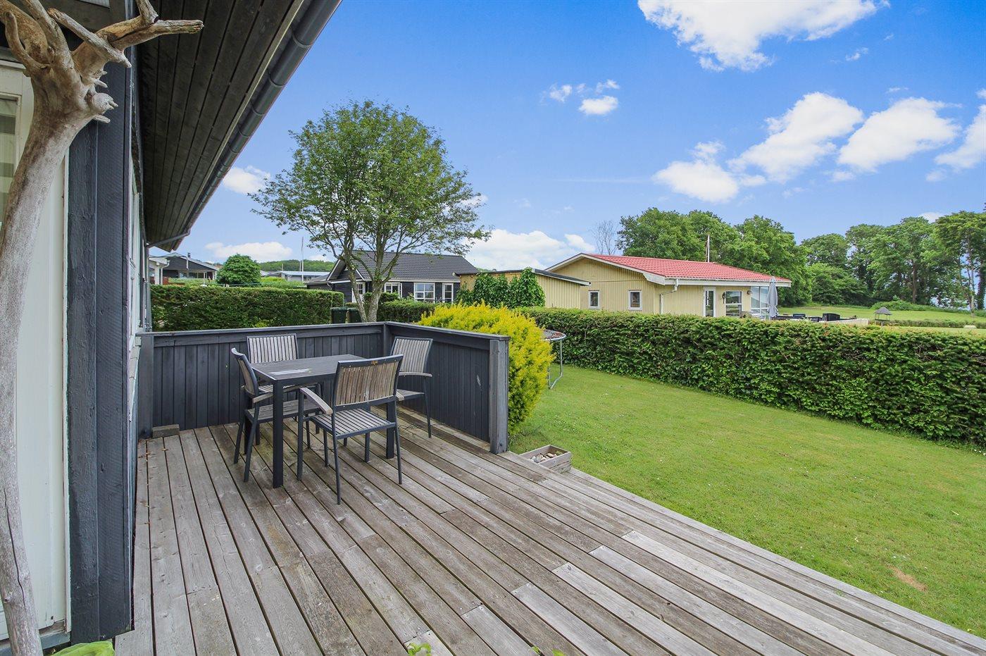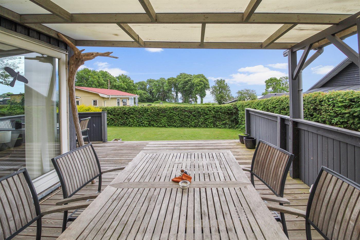 For enden af en blind vej ligger dette sommerhus på en lukket grund med udsigt til vandet fra såvel hus som grund. Huset ligger tæt på børnevenlig badestrand samt fælles legeplads, boldbane og petanquebane.