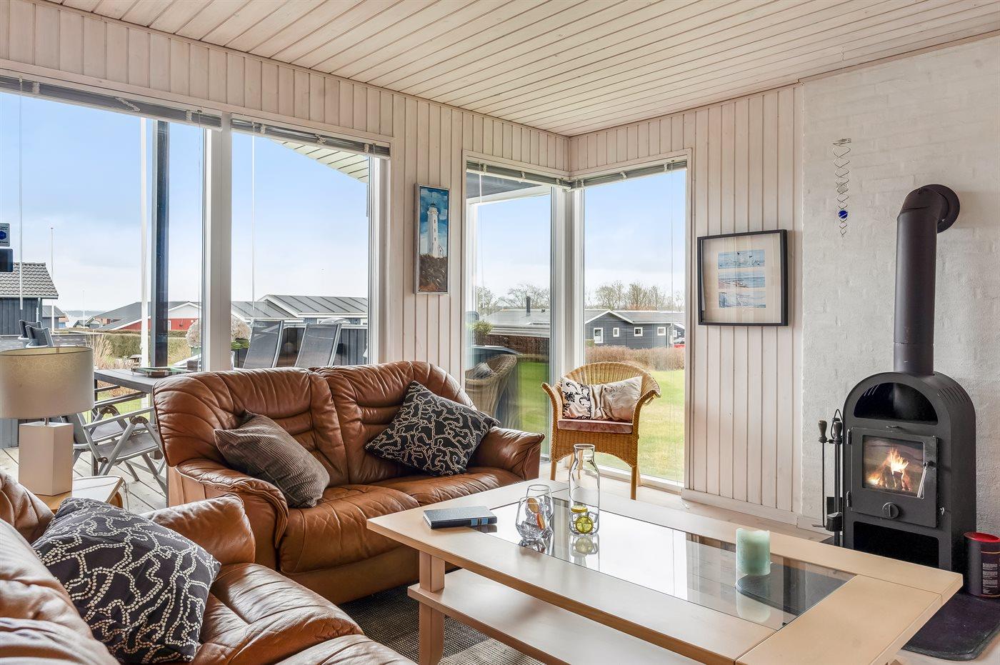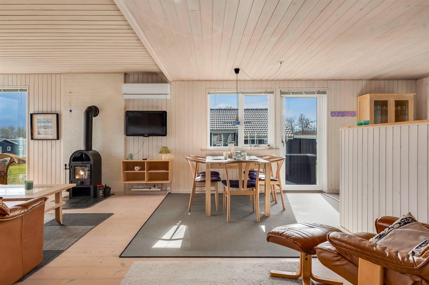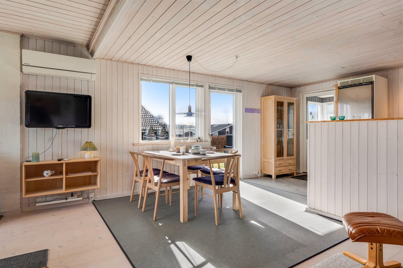Huset har et stort, åbent køkken-alrum i forbindelse med opholdsstuen, hvorfra I kan nyde udsigten. Den samme udsigt kan også opleves fra de dejlige terrasseområder, som delvist er overdækkede. Her er der gode muligheder for at finde en læfyldt krog og nyde stilheden.