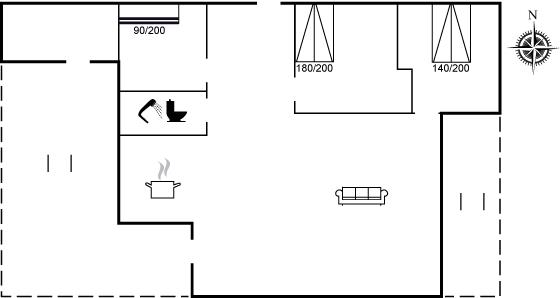 Der er i alt 3 soveværelser. Sovepladserne fordeler sig på: 4 sovepladser i dobbeltsenge. 2 sovepladser i køjeseng.