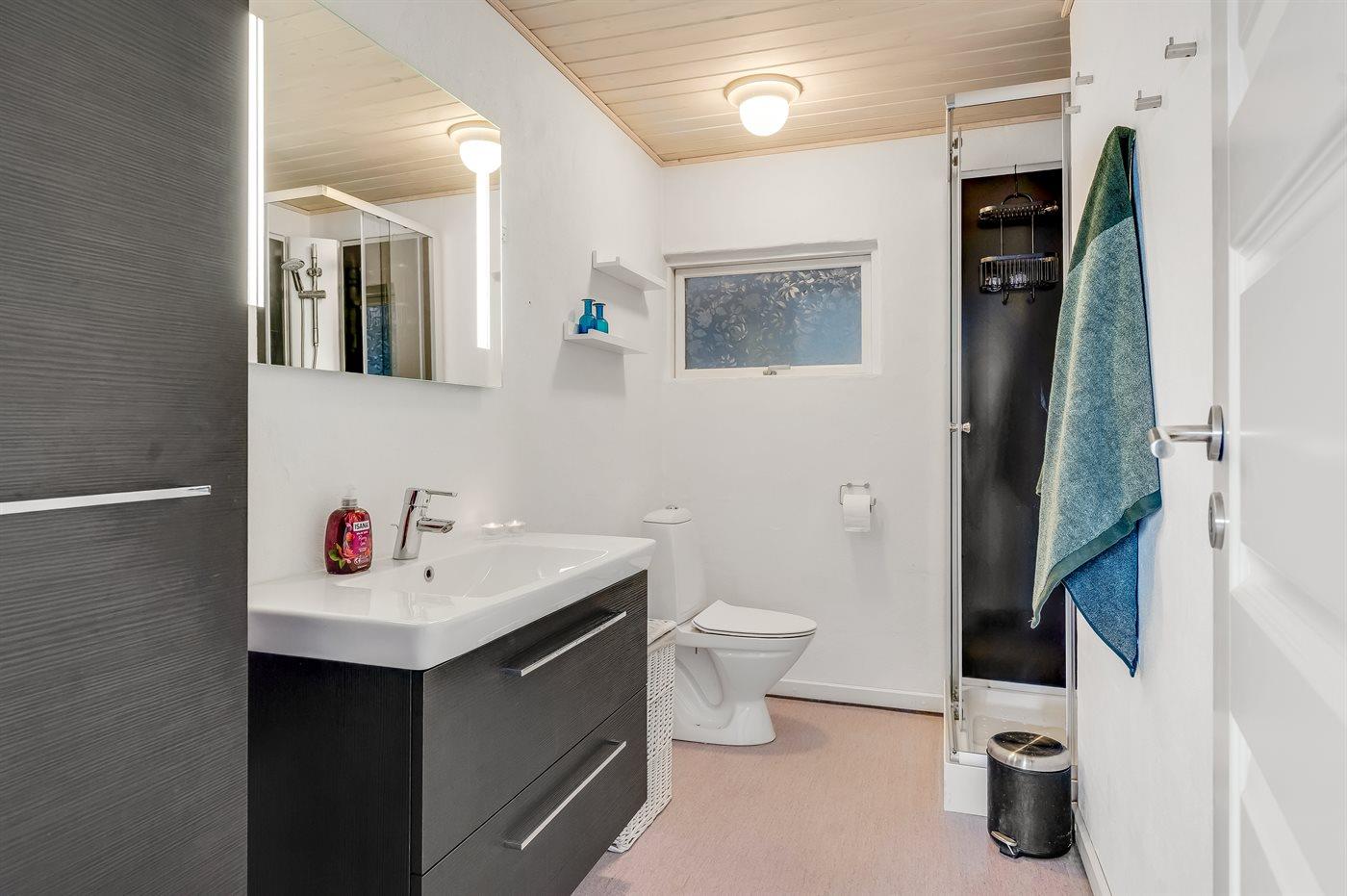 Der er 1 badeværelse med bruseniche og 1 toilet.