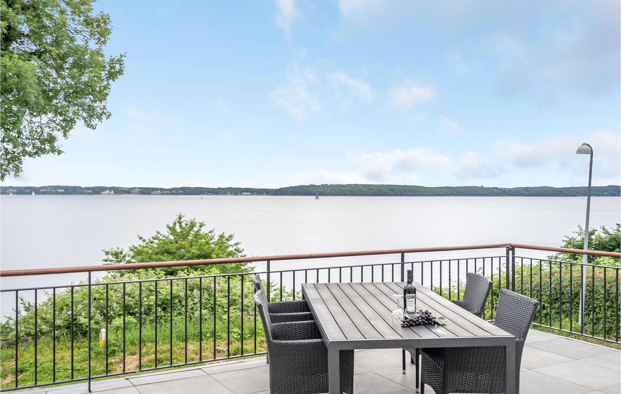 Eksklusivt feriehus med panoramaudsigt over Flensborg Fjord i fredelige Sønderhav, tæt ved vandet og gourmetrestauranter.