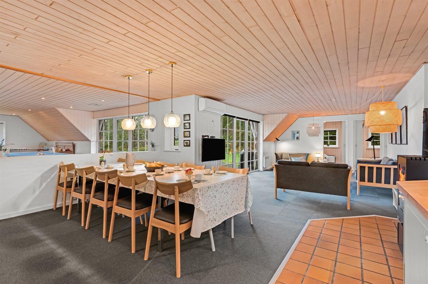 Sommerhuset egner sig til 10 personer samt 1 barn op til 3 år. Ferieboligen er på 182 m² og er bygget i 1992. Det er tilladt at medbringe 2 husdyr. Ferieboligen er udstyret med energibesparende varmepumpe. Ferieboligen har vaskemaskine. Tørretumbler. Frysekapacitet på 50 liter. Der er desuden brændeovn. Til de små er der 1 stk. barnestol.