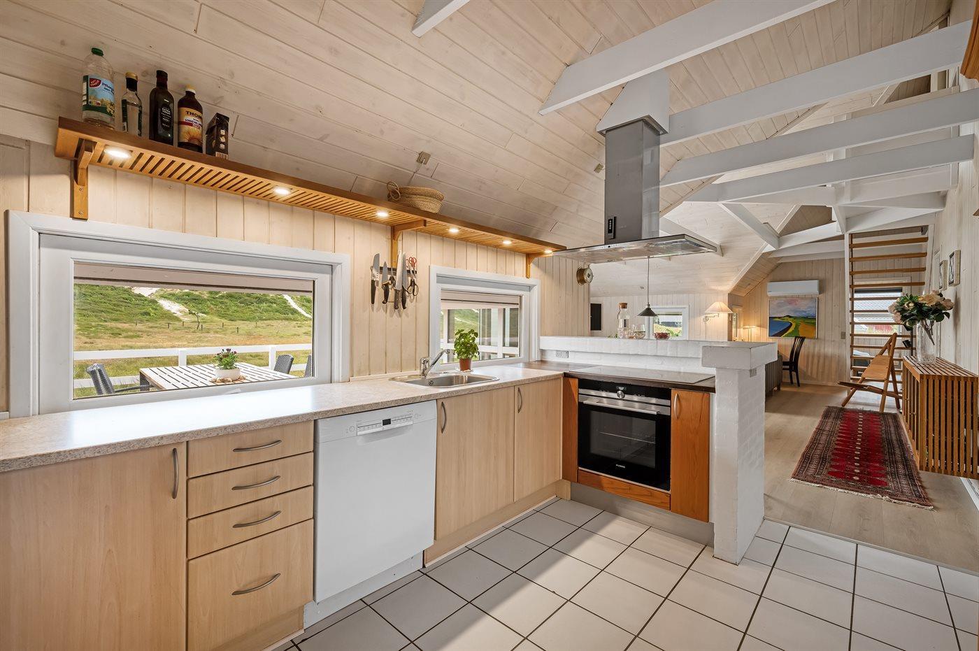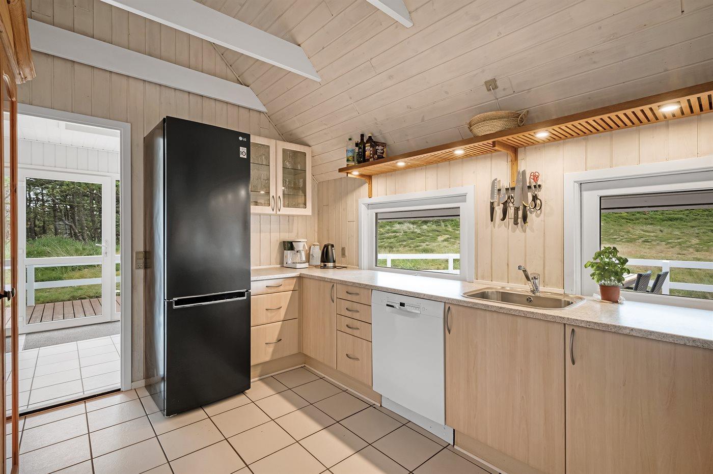Køkkenet er udstyret med 1 køleskab. Der er 4 induktionskogeplader, varmluftovn, mikrobølgeovn samt opvaskemaskine Der er gulvvarme i køkkenet.