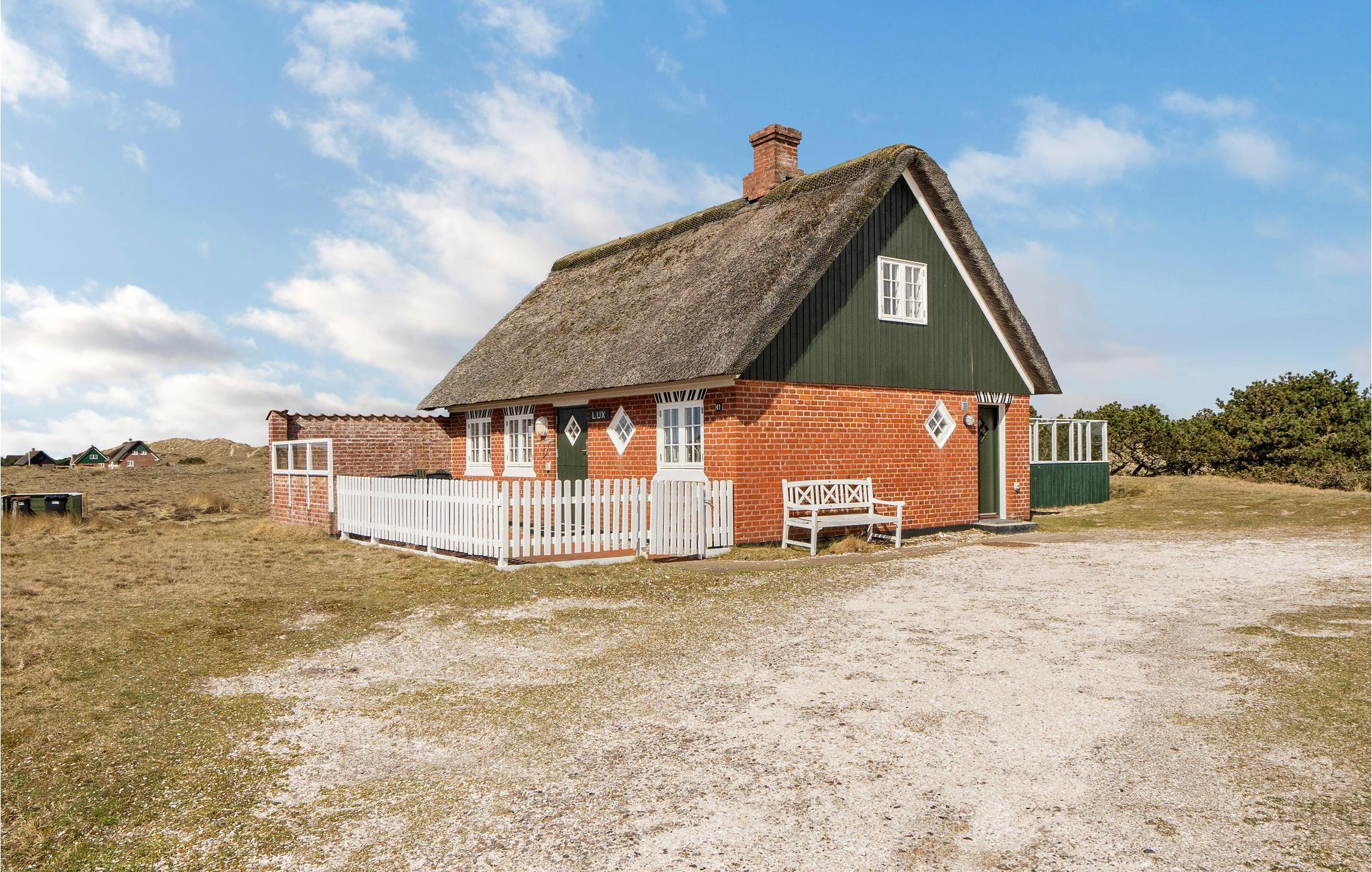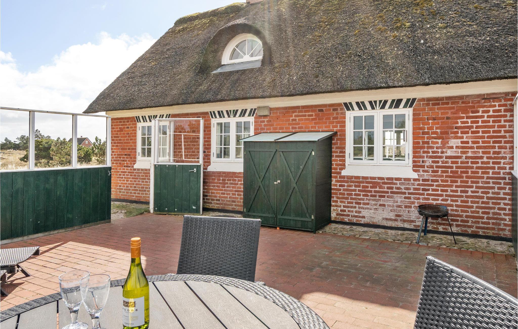 Hyggeligt sommerhus med stråtag nær sandstrand i Sønderho på Fanø med brændeovn og åbent køkken.