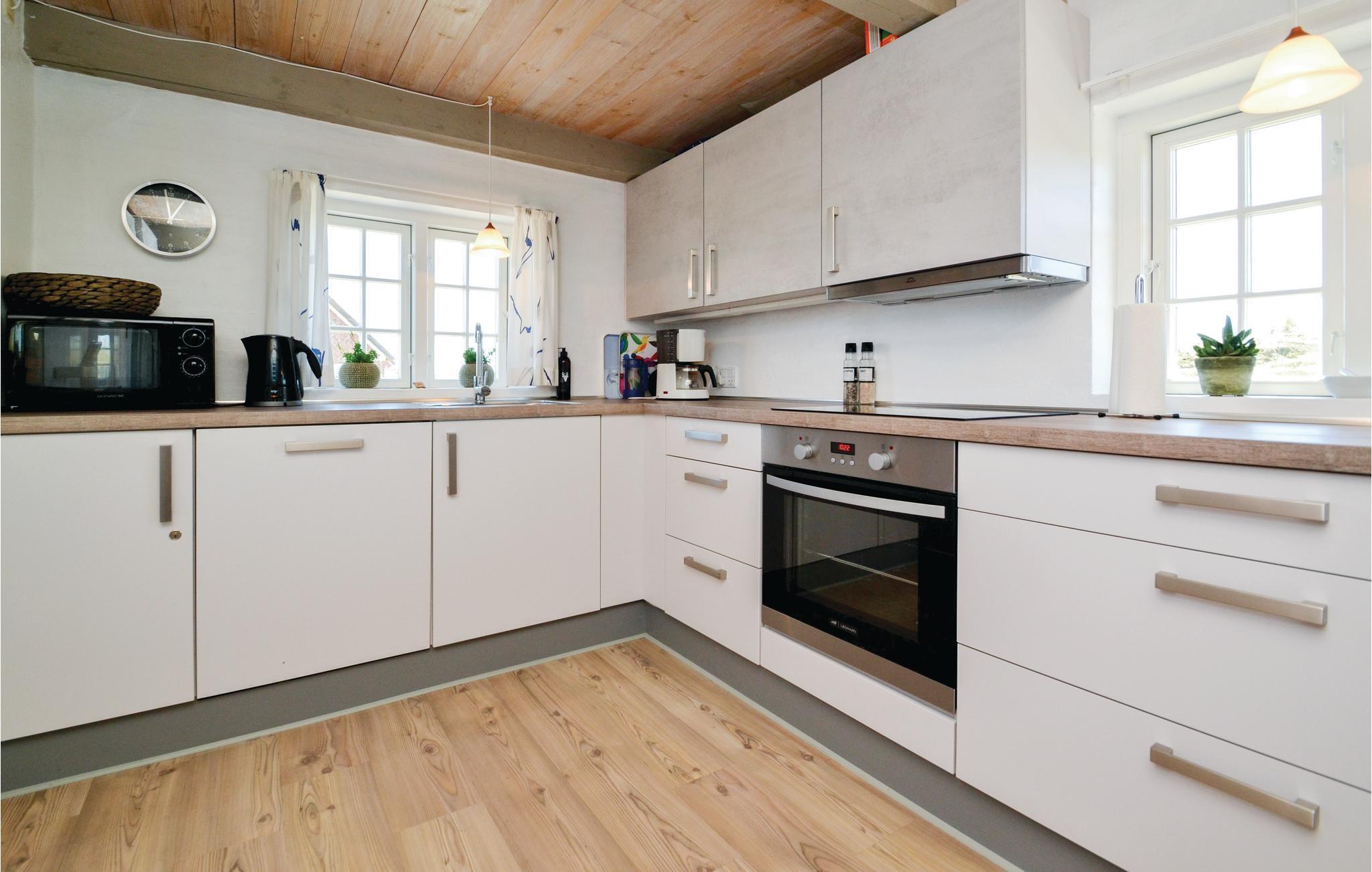 Sønderho blev i 2011 kåret til Danmarks smukkeste by og byder også på kulturelle oplevelser, cafébesøg og indkøbsmuligheder. Pænt og lyst køkken i åben forbindelse med spiseplads og stuen med brændeovn. Pænt badeværelse med sauna. Første sal med to gode soverum.