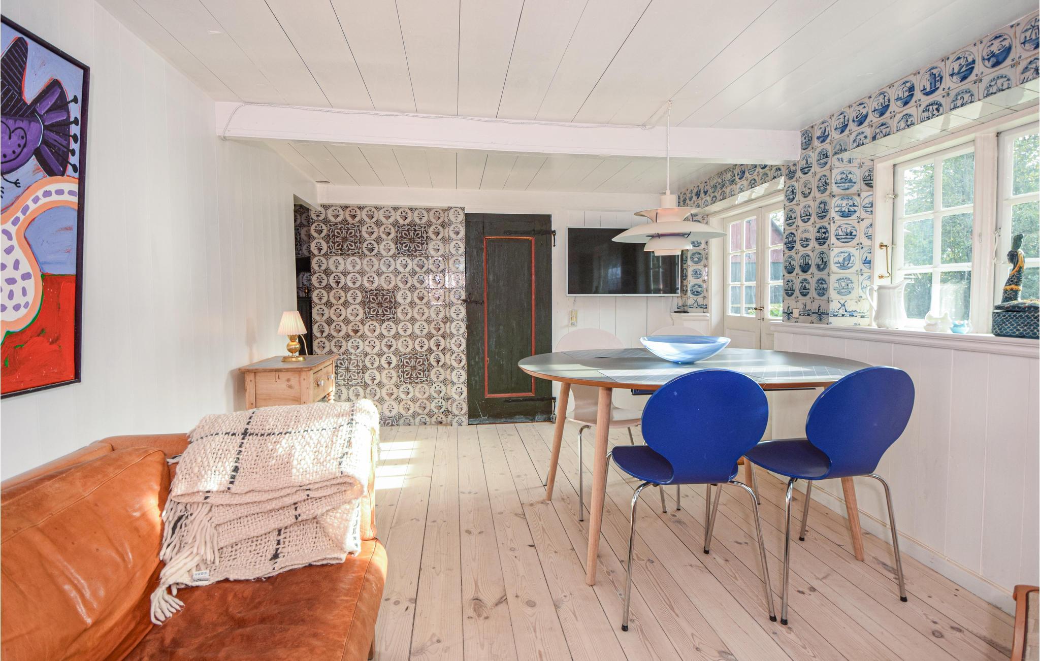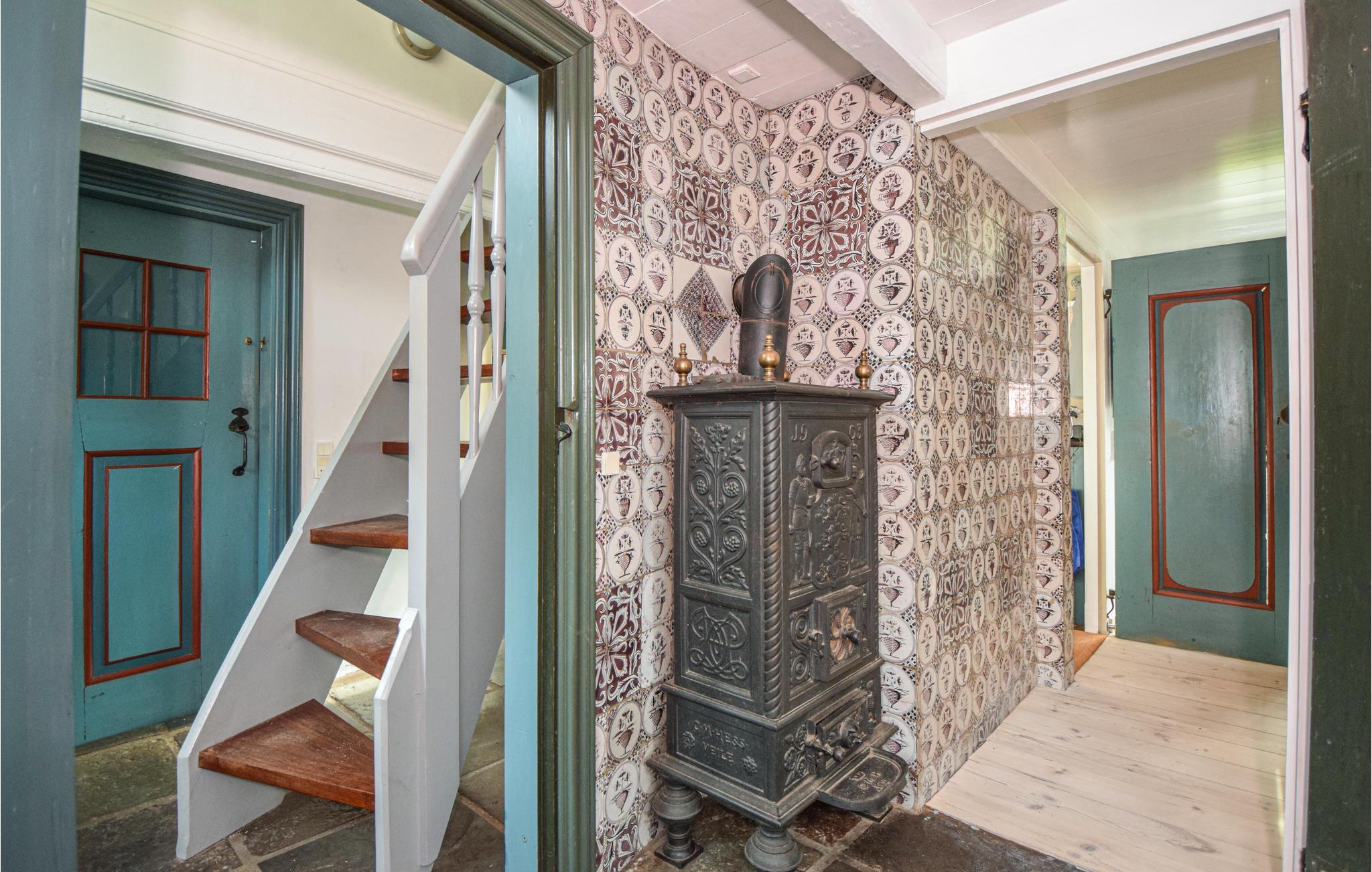 Murstenshuset med stråtag er bevaret i de materialer og stil, som det oprindeligt blev bygget i. Blandt andet er ølandsfliserne i køkkenet og soveværelset fra et oprindeligt fanøhus i byen fra 1800-tallet. Der er ikke højt til loftet, men det gør bare huset endnu mere hyggeligt og autentisk. Indretningen kombinerer det moderne med det gamle.