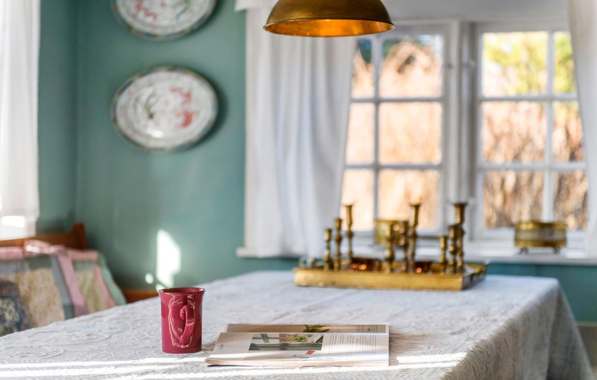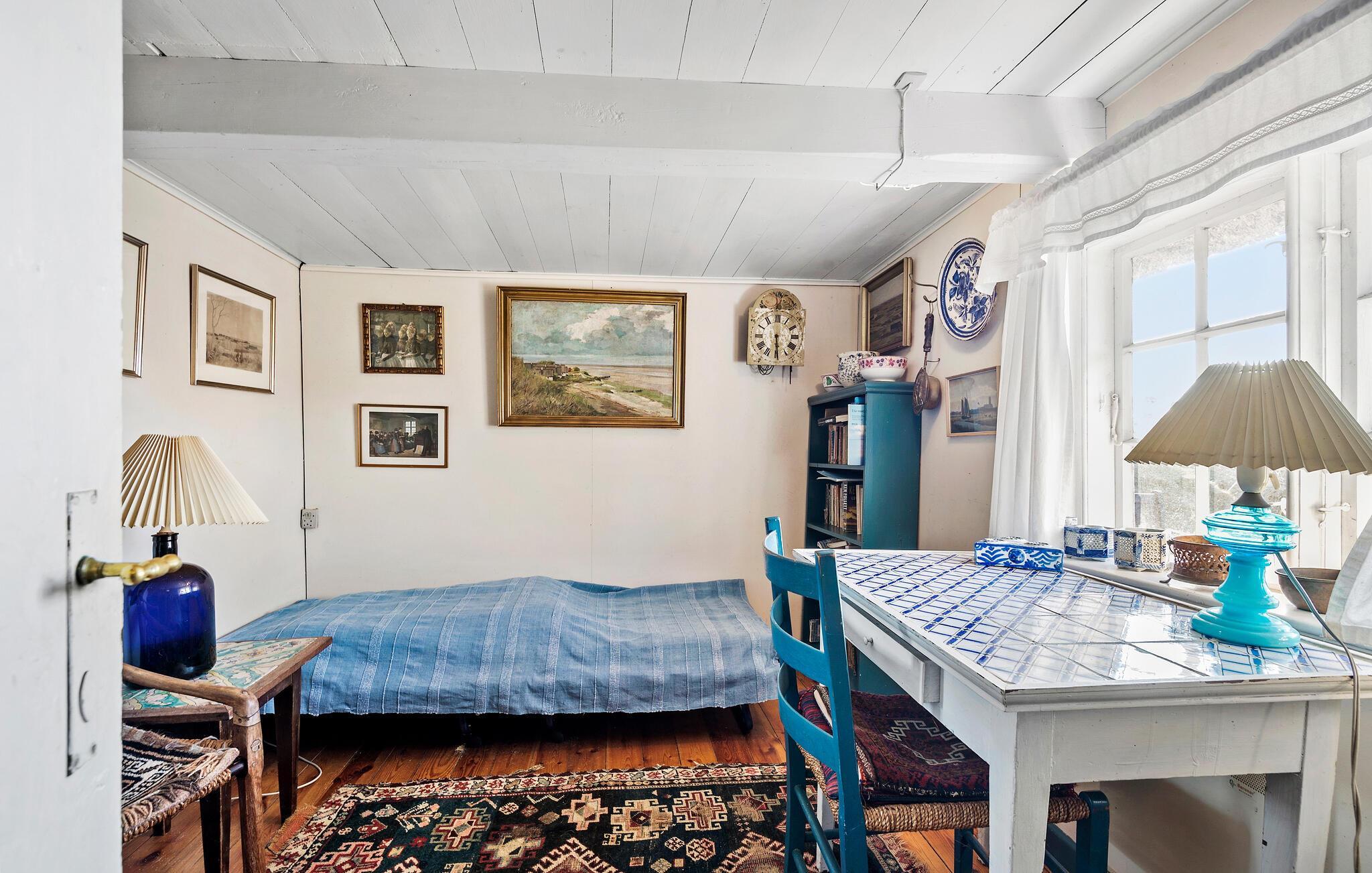 Dette velbevarede feriehus emmer af sjæl. Her kan I se frem til oprindelige bjælker, farverige tekstiler og stemningsfulde detaljer. Sammensæt de skønne feriemåltider i det nostalgiske køkken og gør madlavningen til et hyggeligt fællesprojekt. Nyd jeres morgenmad rundt om spisebordet, mens I lægger en plan for dagen. Find en god bog i biblioteket og find jer til rette med en varm kop te, mens ilden knitrer i brændeovnen.