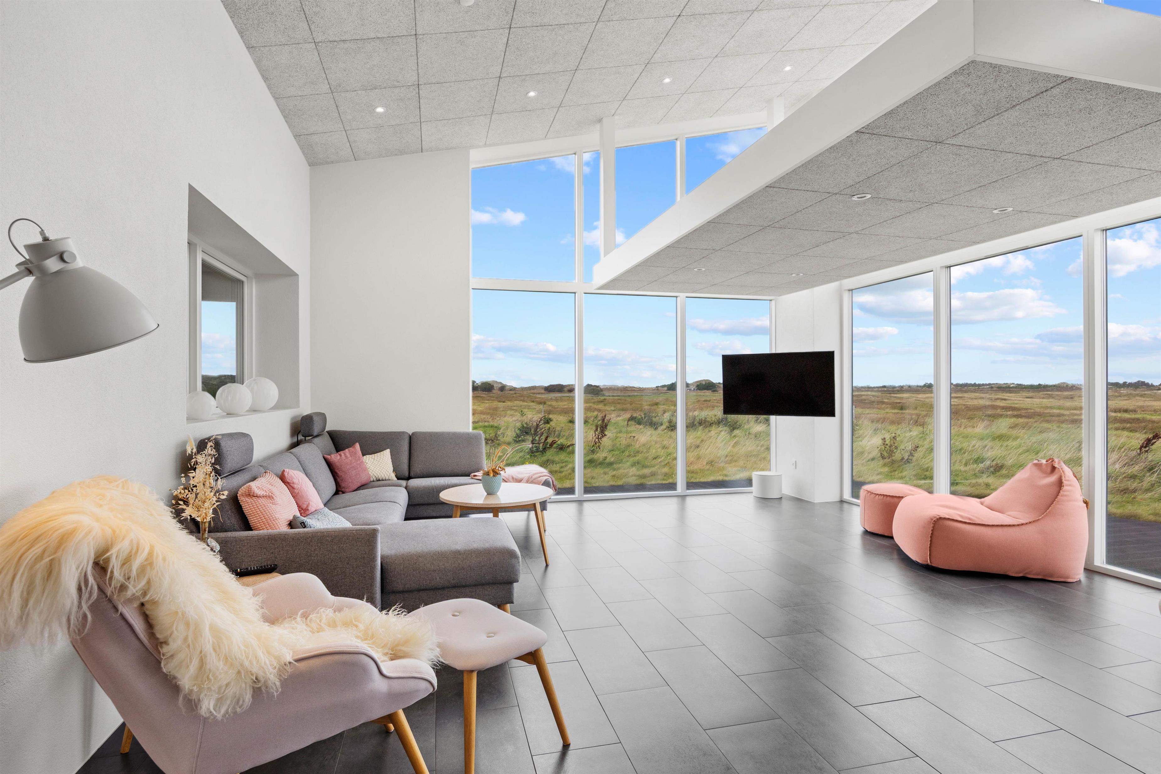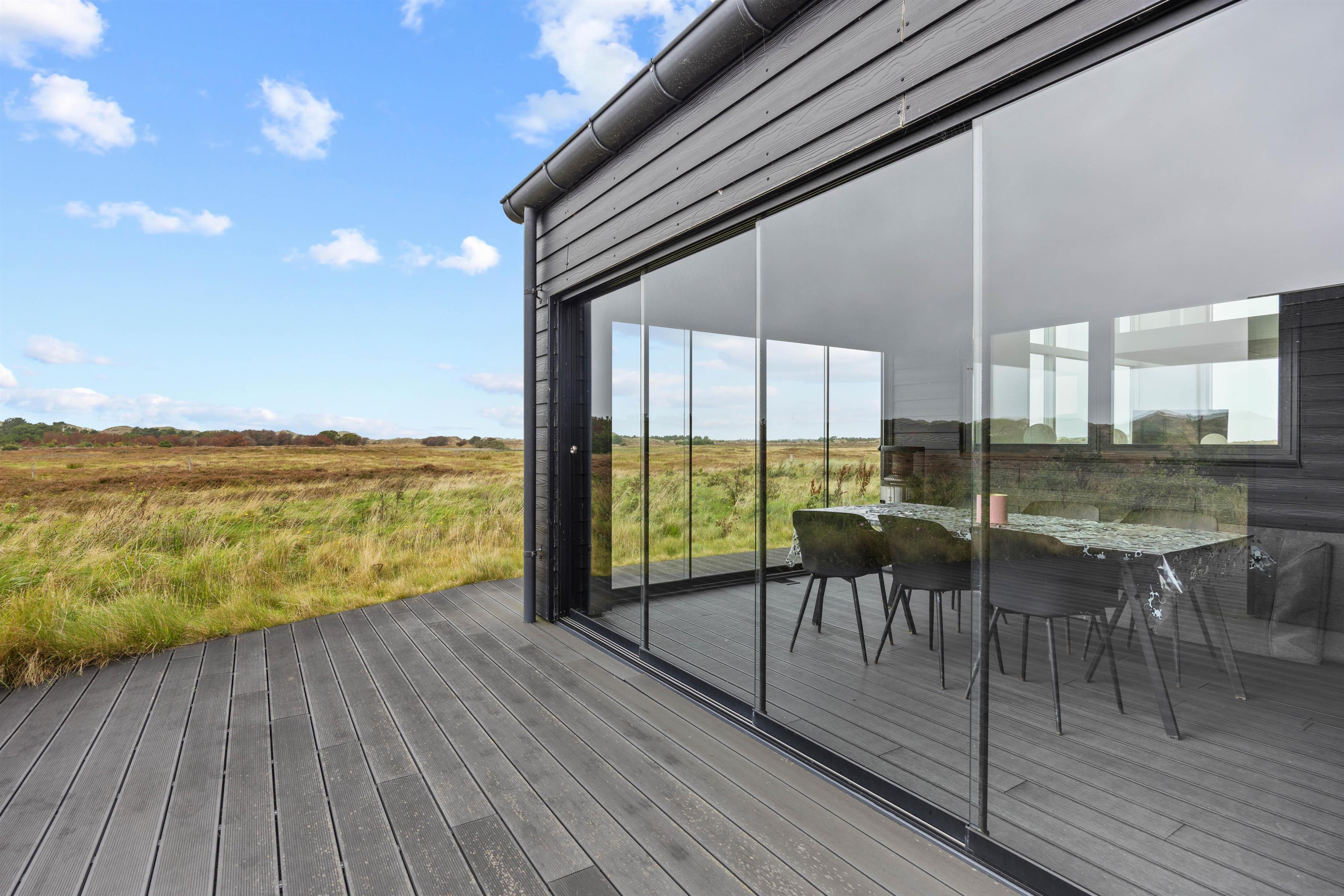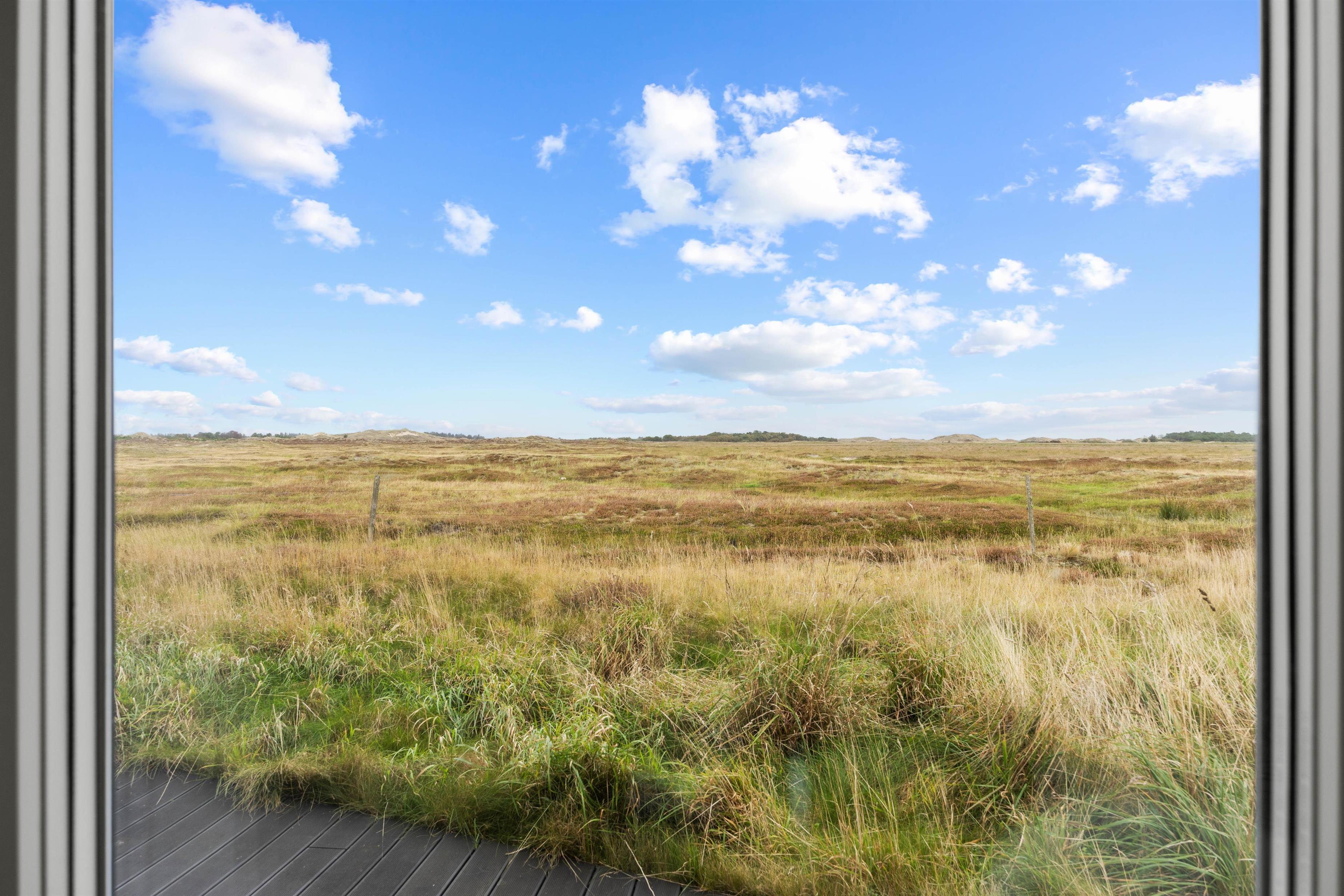 Et af højdepunkterne ved det smukke feriehus i Sønderho er den betagende panoramaudsigt. Den vidtstrakte udsigt over den uberørte natur vil fortrylle dig og er den perfekte kulisse for afslapning og ro i sjælen samtidig med, at de lukker masser af lys ind i det moderne feriehus.
