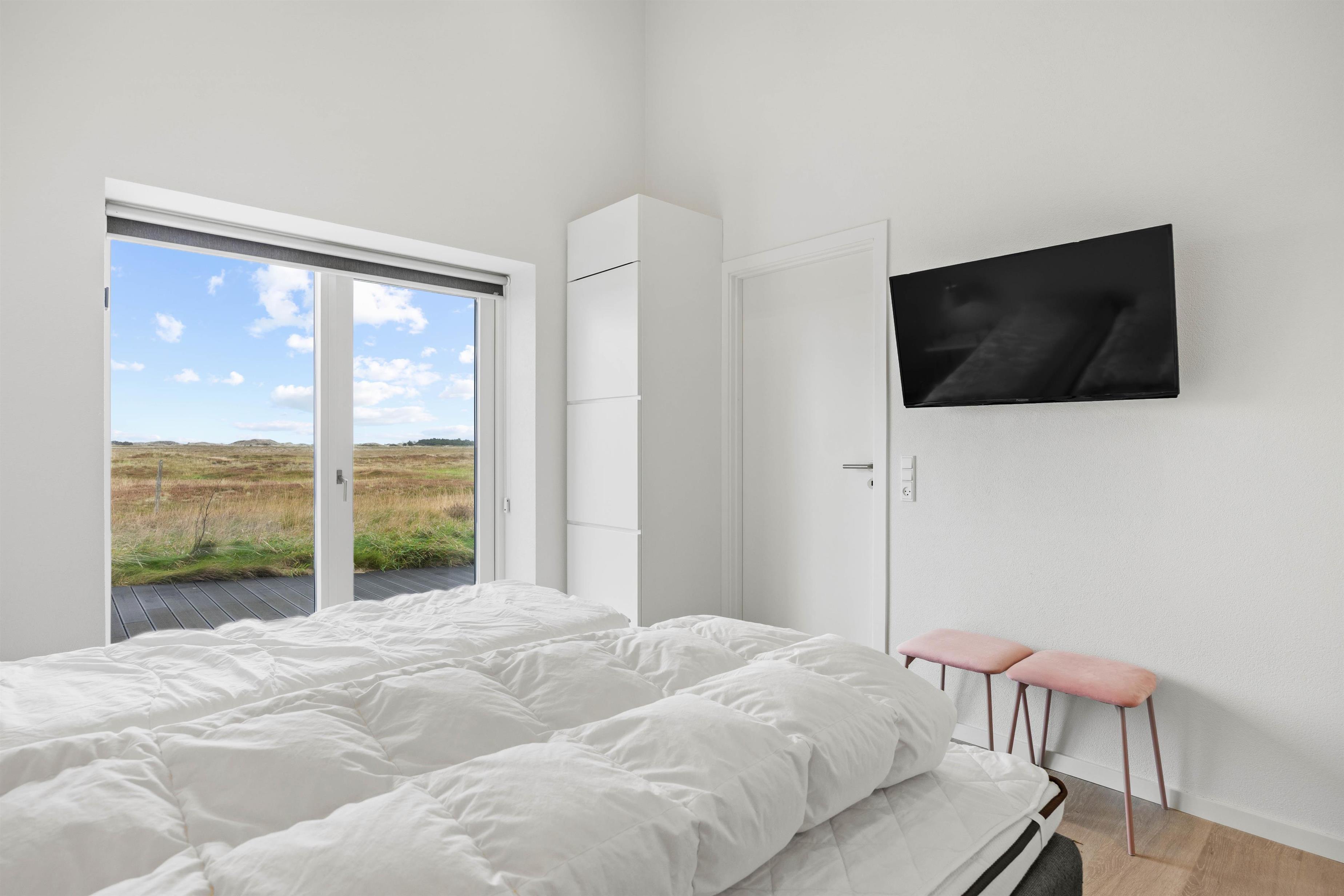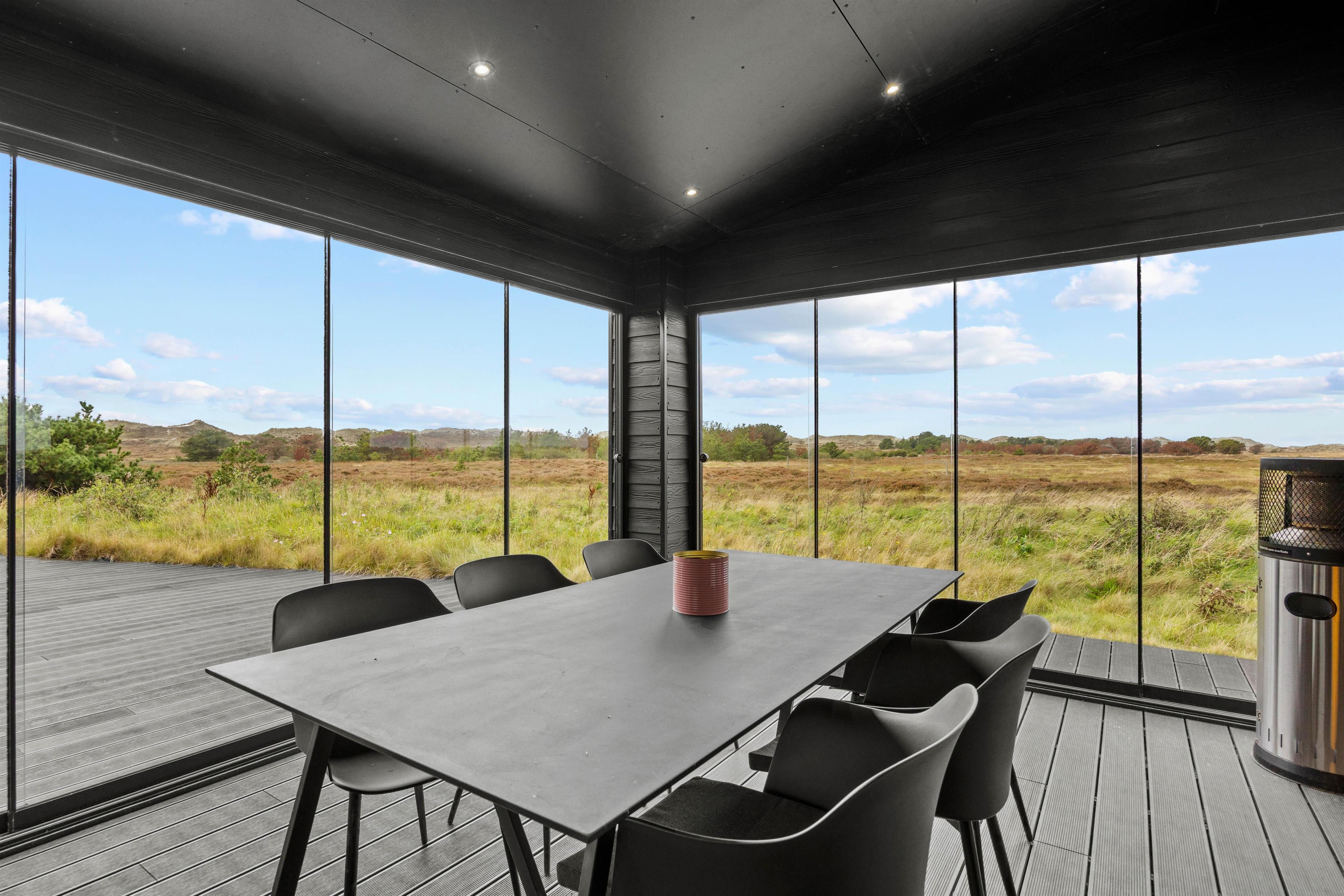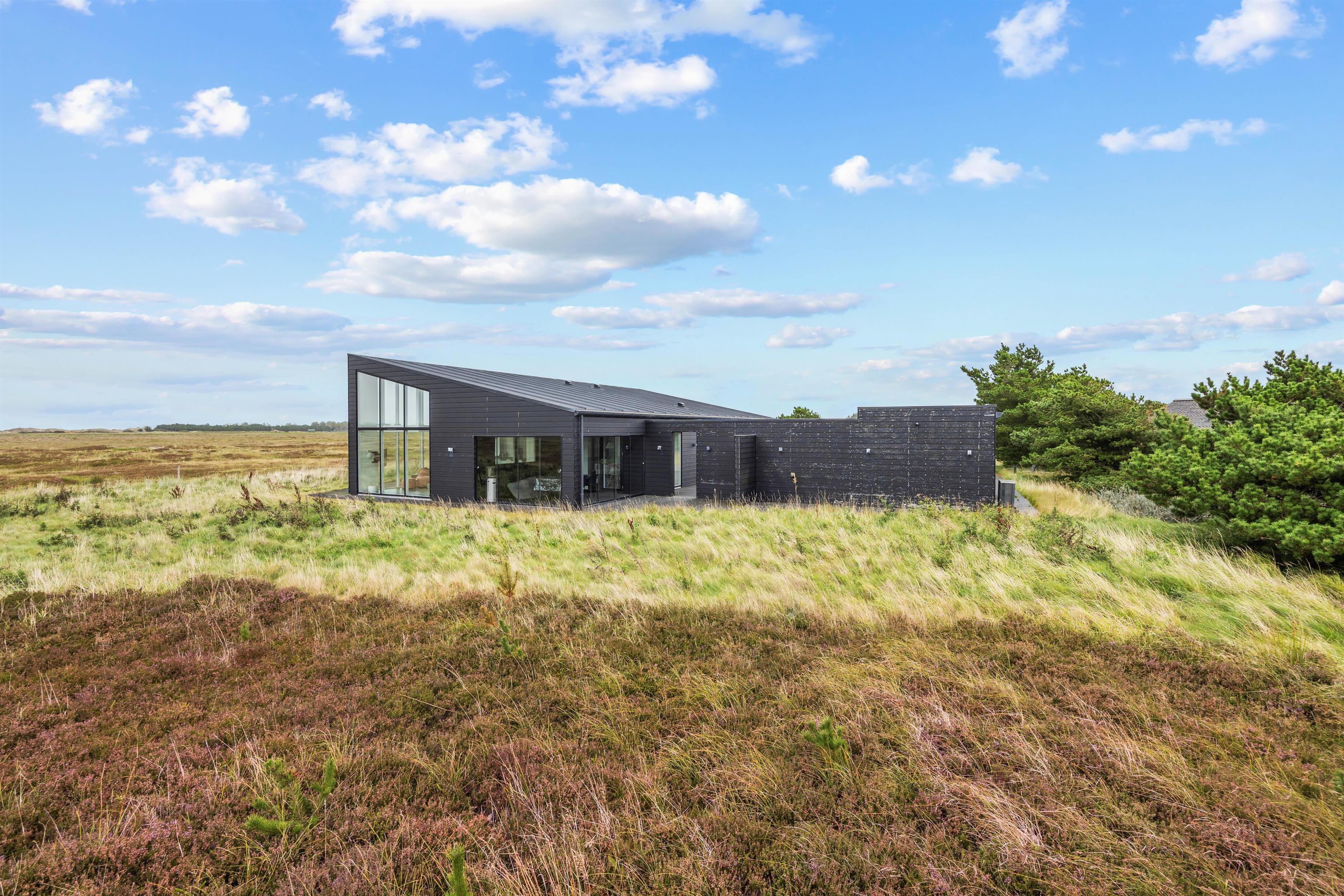 Et af højdepunkterne ved det smukke feriehus i Sønderho er den betagende panoramaudsigt. Den vidtstrakte udsigt over den uberørte natur vil fortrylle dig og er den perfekte kulisse for afslapning og ro i sjælen samtidig med, at de lukker masser af lys ind i det moderne feriehus.