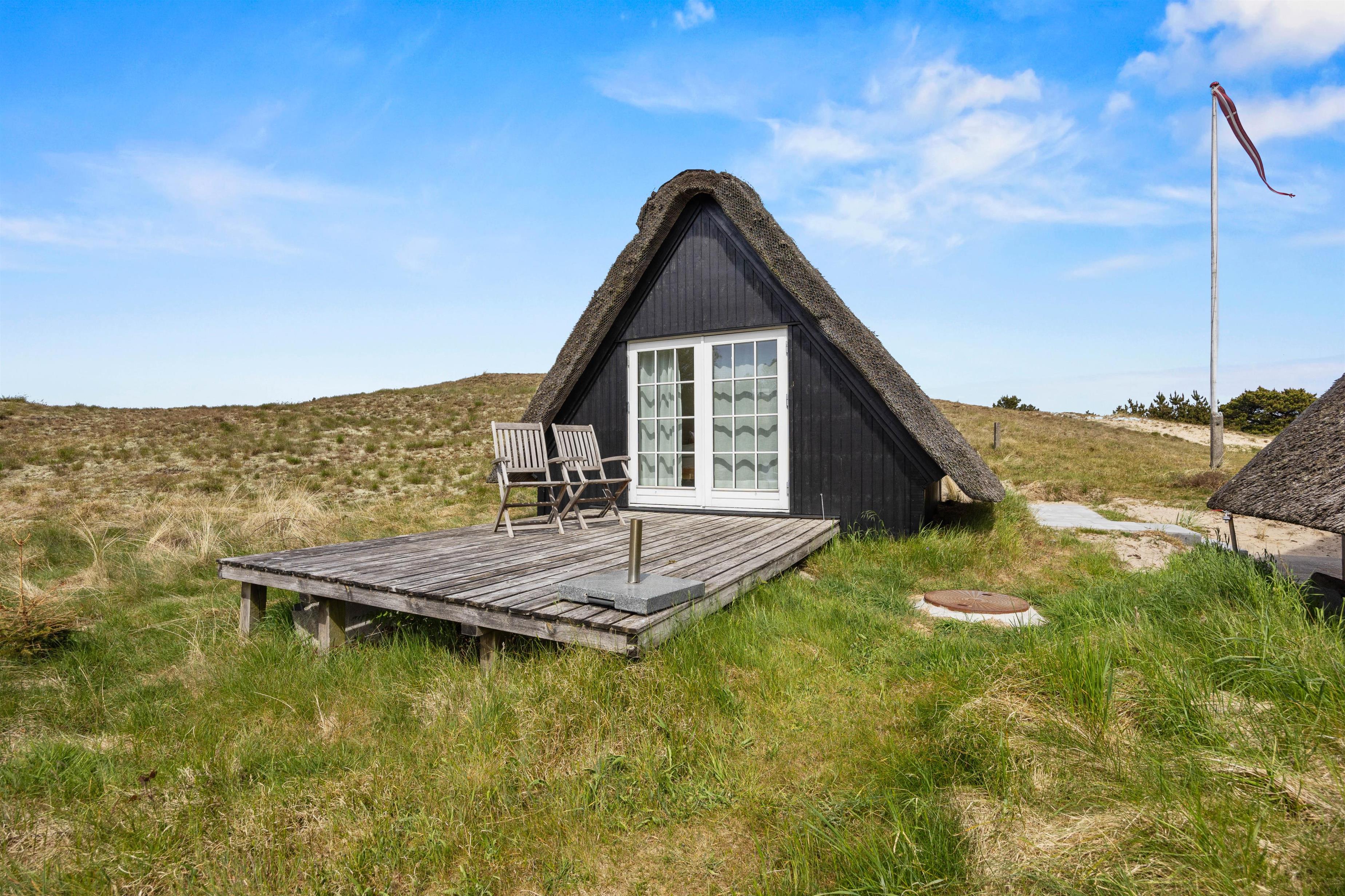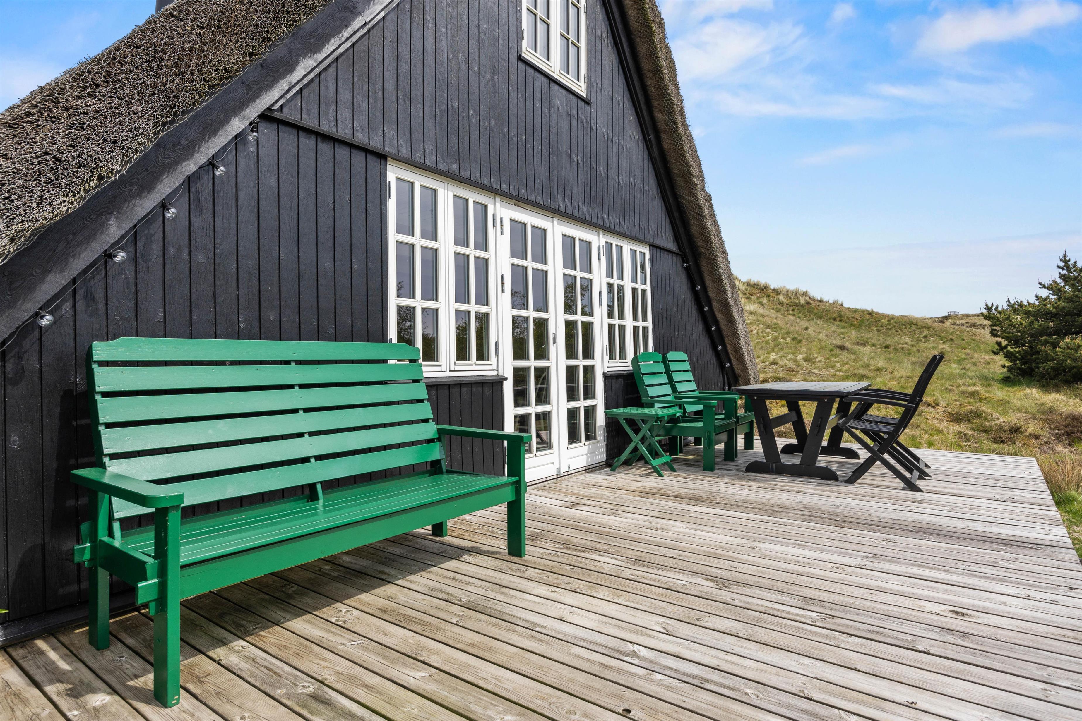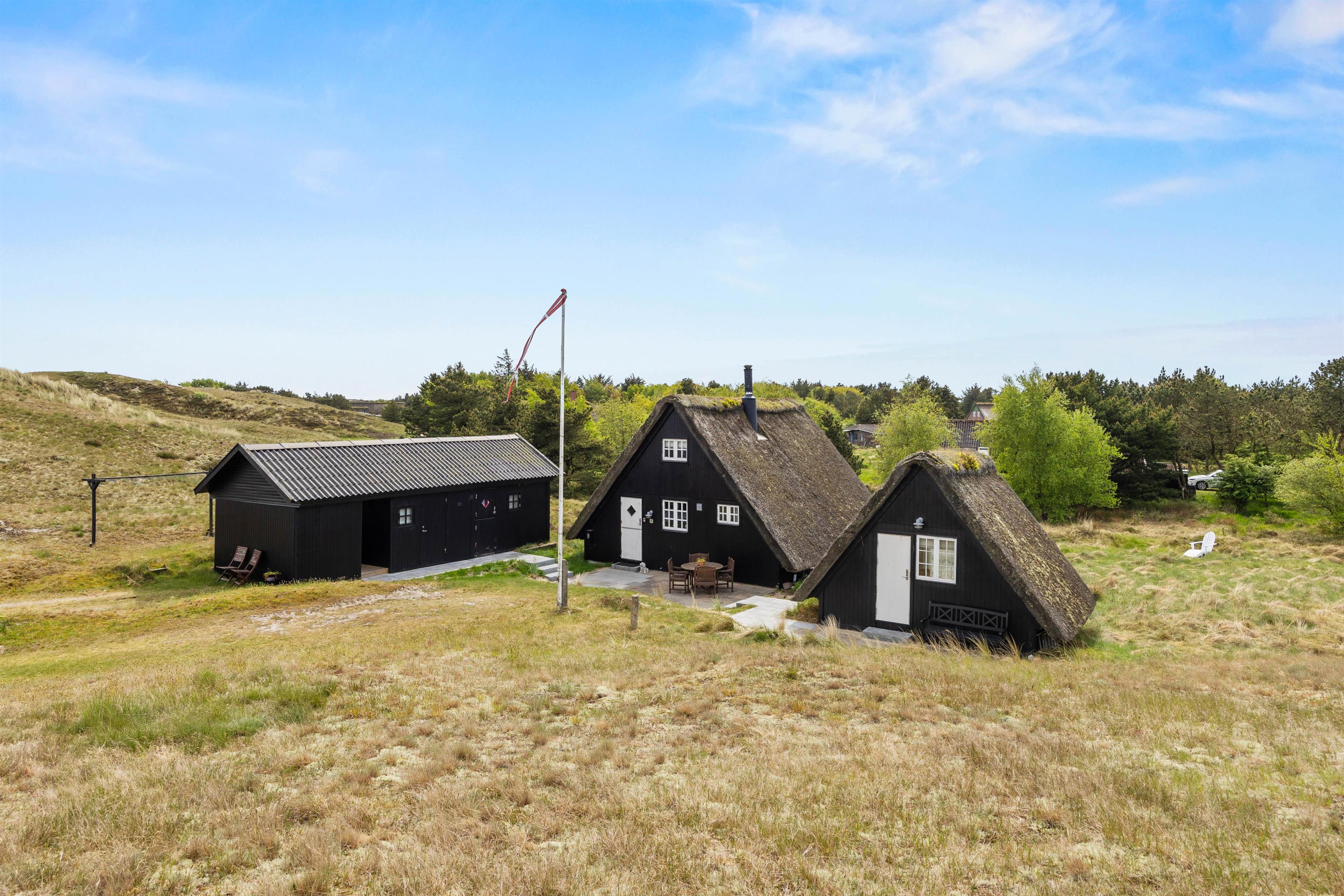 Udenfor venter en skøn naturgrund, hvor I kan nyde dagens måltider på terrassen, lade børnene lege frit eller bare læne jer tilbage i havemøblerne og lytte til fuglene. Når vejret er til det, kan I tænde op i grillen og lade aftenen glide roligt afsted under åben himmel. Og har I lyst til en dukkert eller en lang gåtur i klitterne, er stranden kun en kort cykeltur væk.