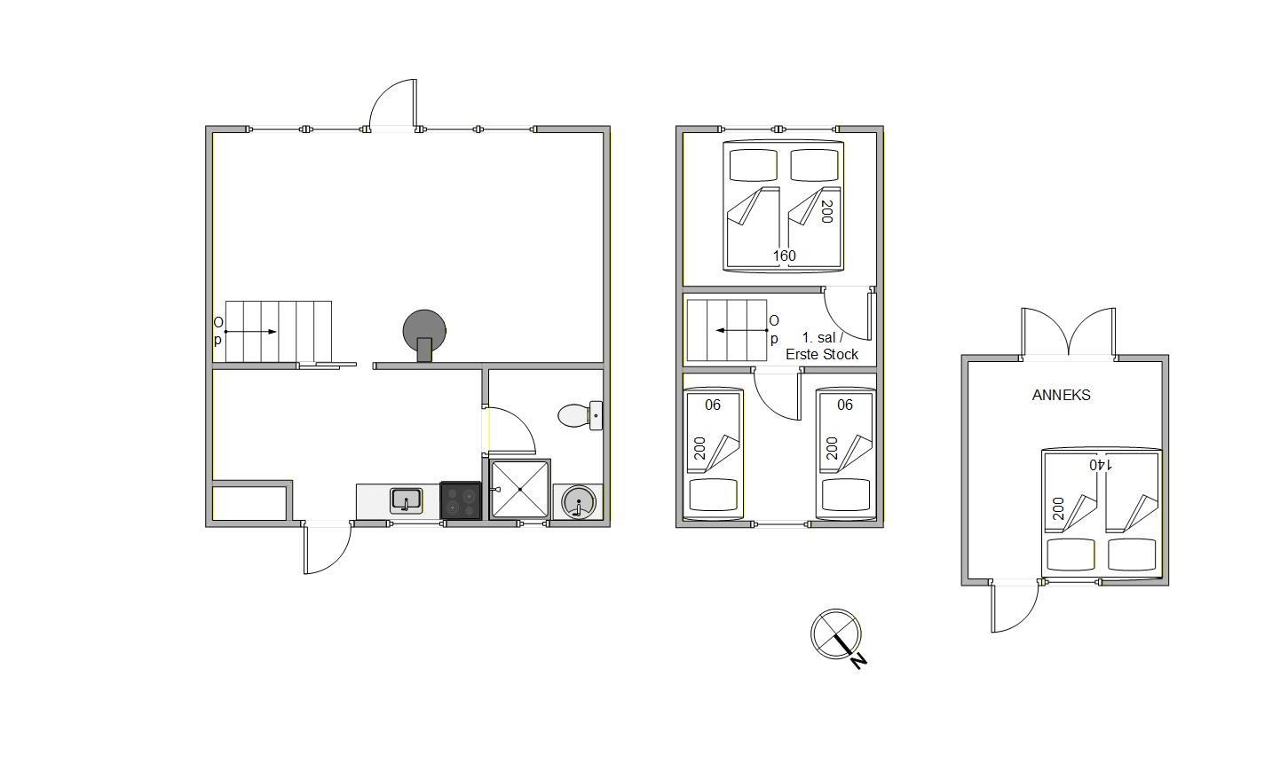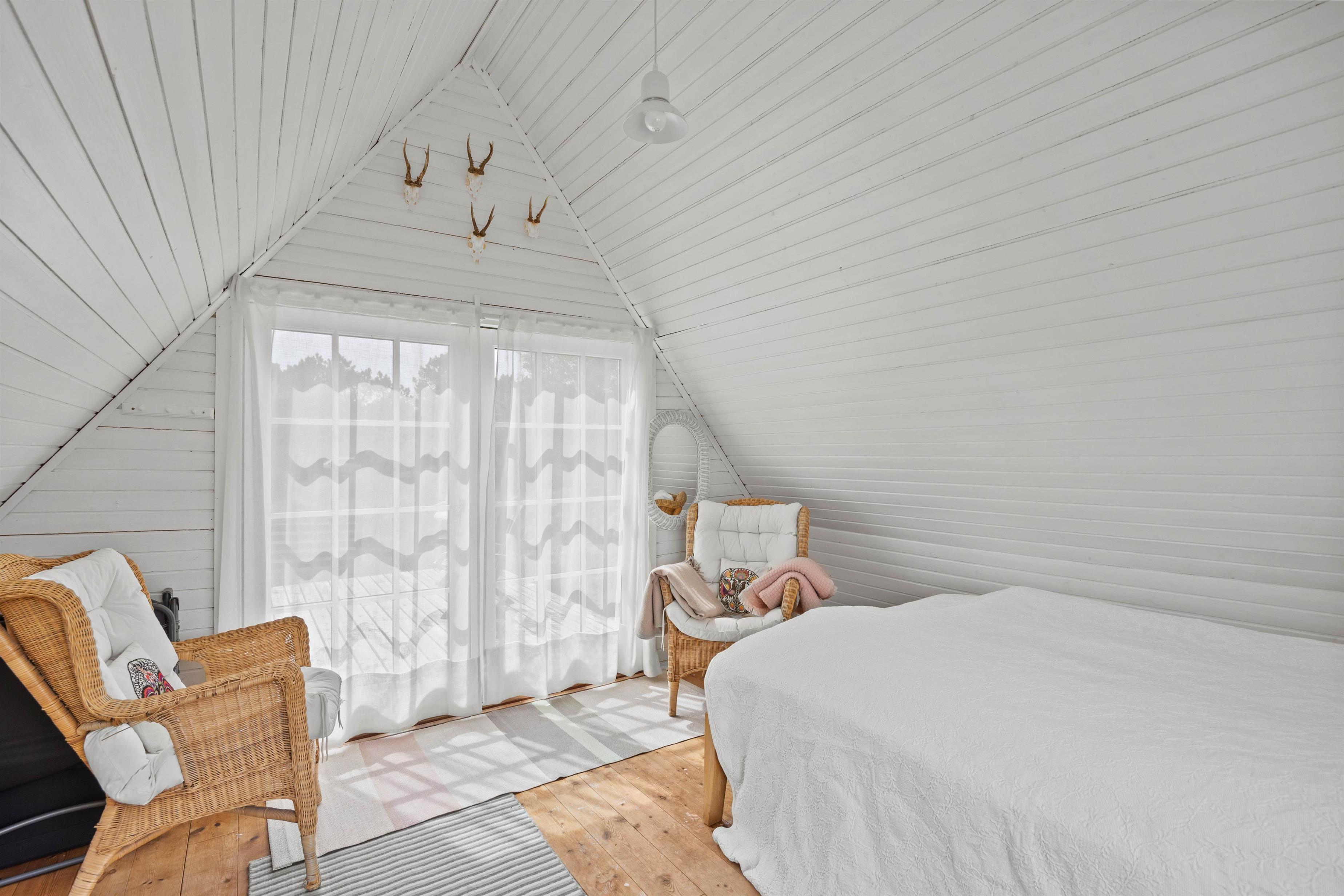 Det stråtækte sommerhus fordeler sig over 2 plan og er ideelt til en lille familie eller 2 par, der ønsker en base med både atmosfære og komfort. På første sal finder I 2 hyggelige soveværelser, mens stueplan rummer et fint badeværelse og et opholdsrum med køkken og spiseplads i åben forbindelse. Det tredje soveværelse ligger i det velindrettede anneks – en oplagt løsning, hvis I har teenagere med, eller hvis nogen har brug for lidt ekstra ro og privatliv.