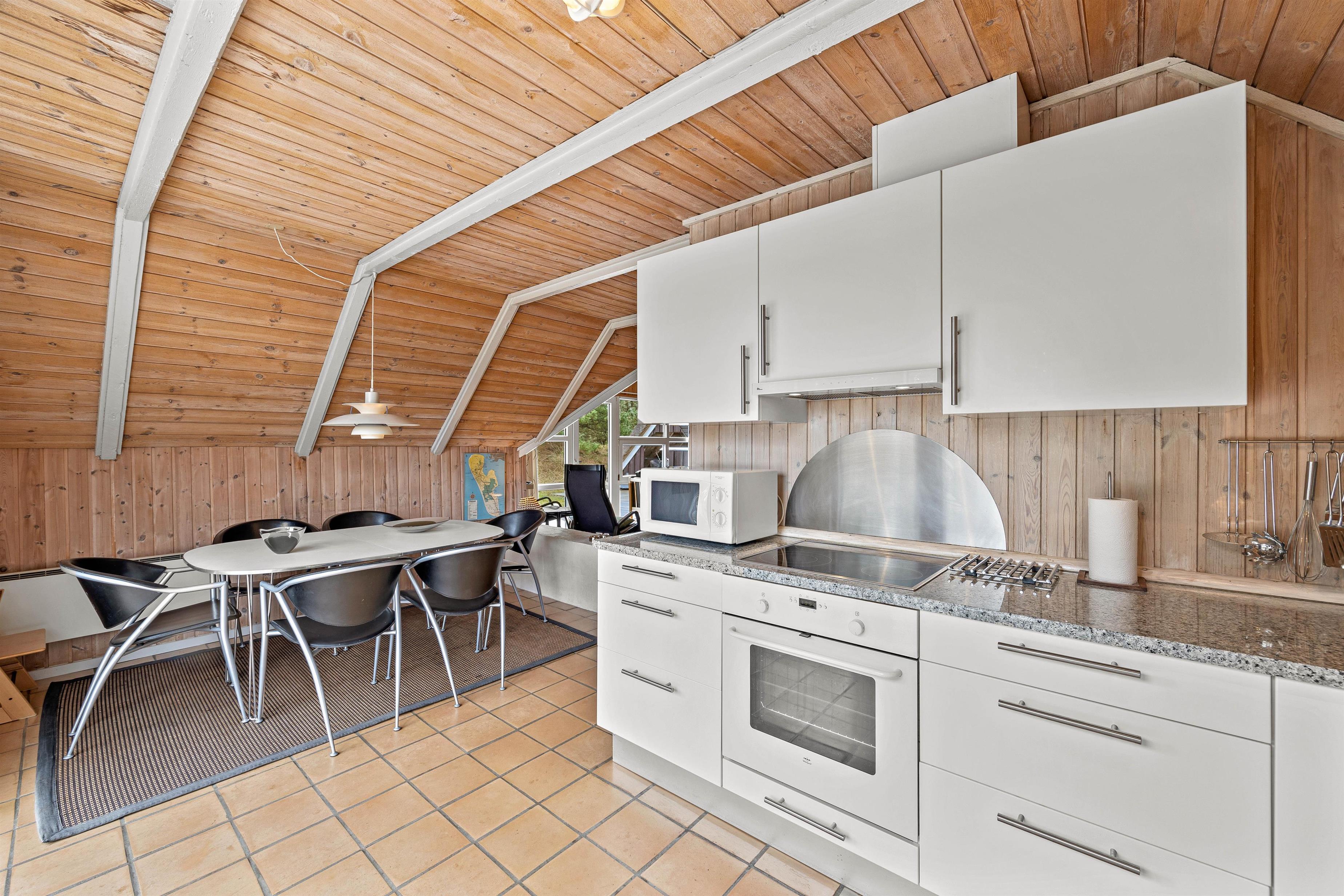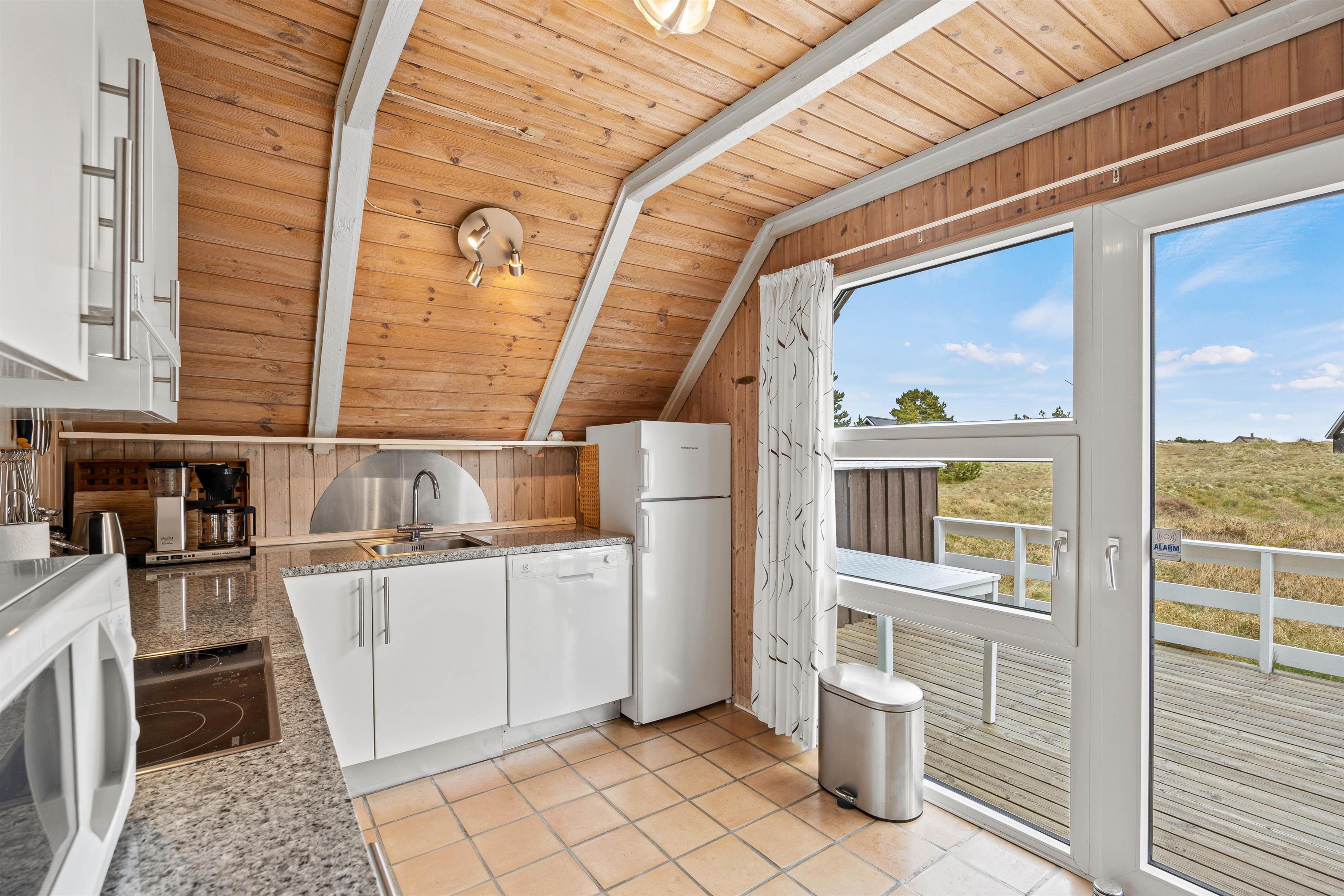 Dette charmende sommerhus på 93 m2 er opført i 1986, og fremstår lyst og rummeligt med god plads til samvær. Samlingspunktet for familien eller vennerne er det store alrum, hvor stue, spiseplads og køkken er forenet og i åben forbindelse til hinanden. Her kan I hygge her sammen eller hver for sig, med et kortspil omkring spisebordet imens familiens mesterkok tryller i det veludstyrede køkken der indeholder både opvaskemaskine og mikroovn.