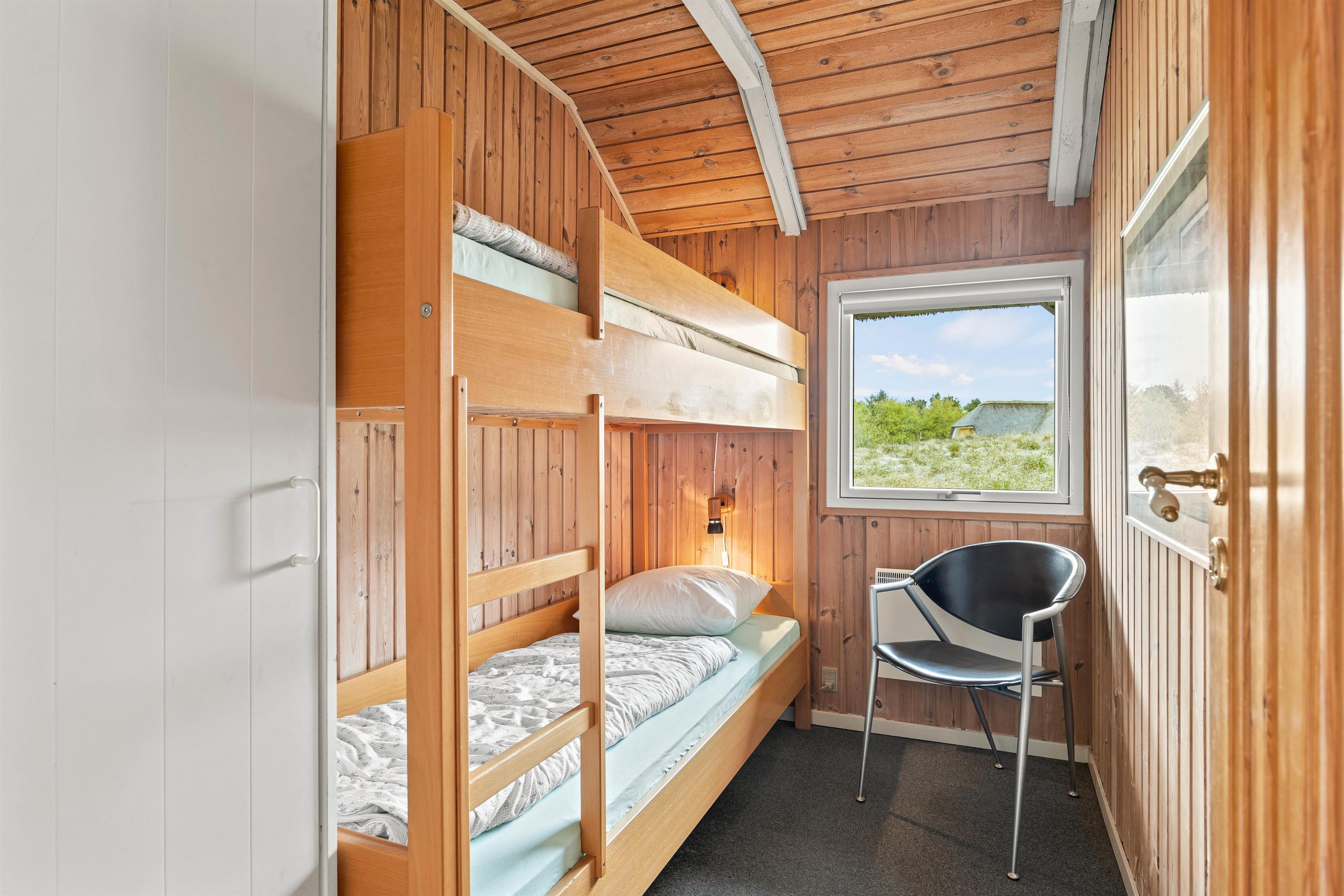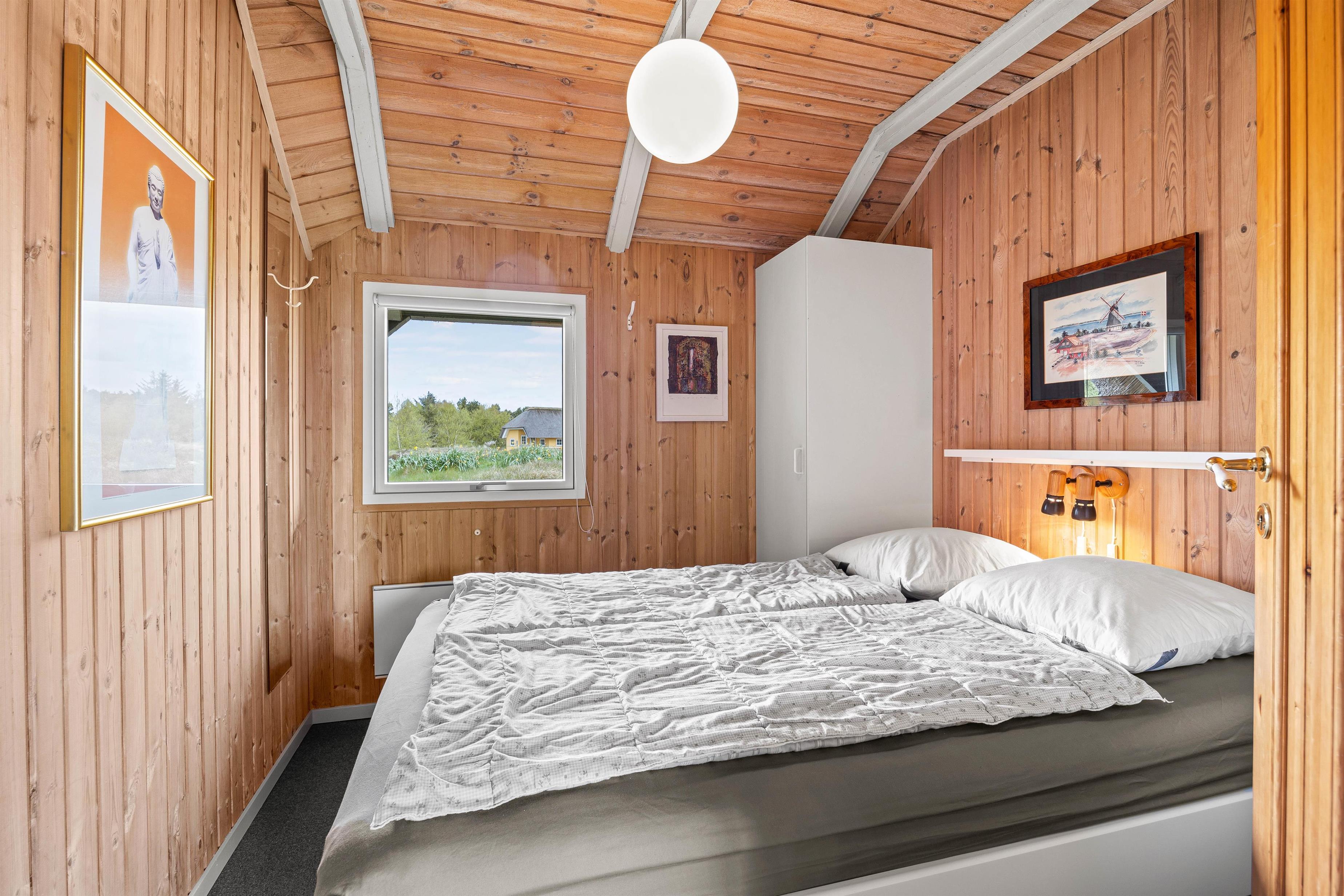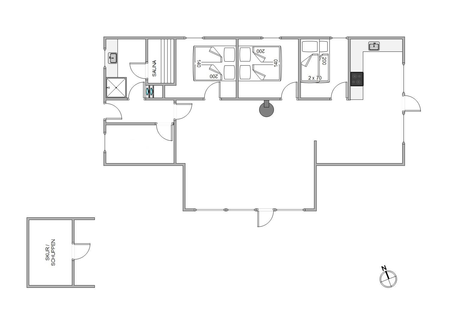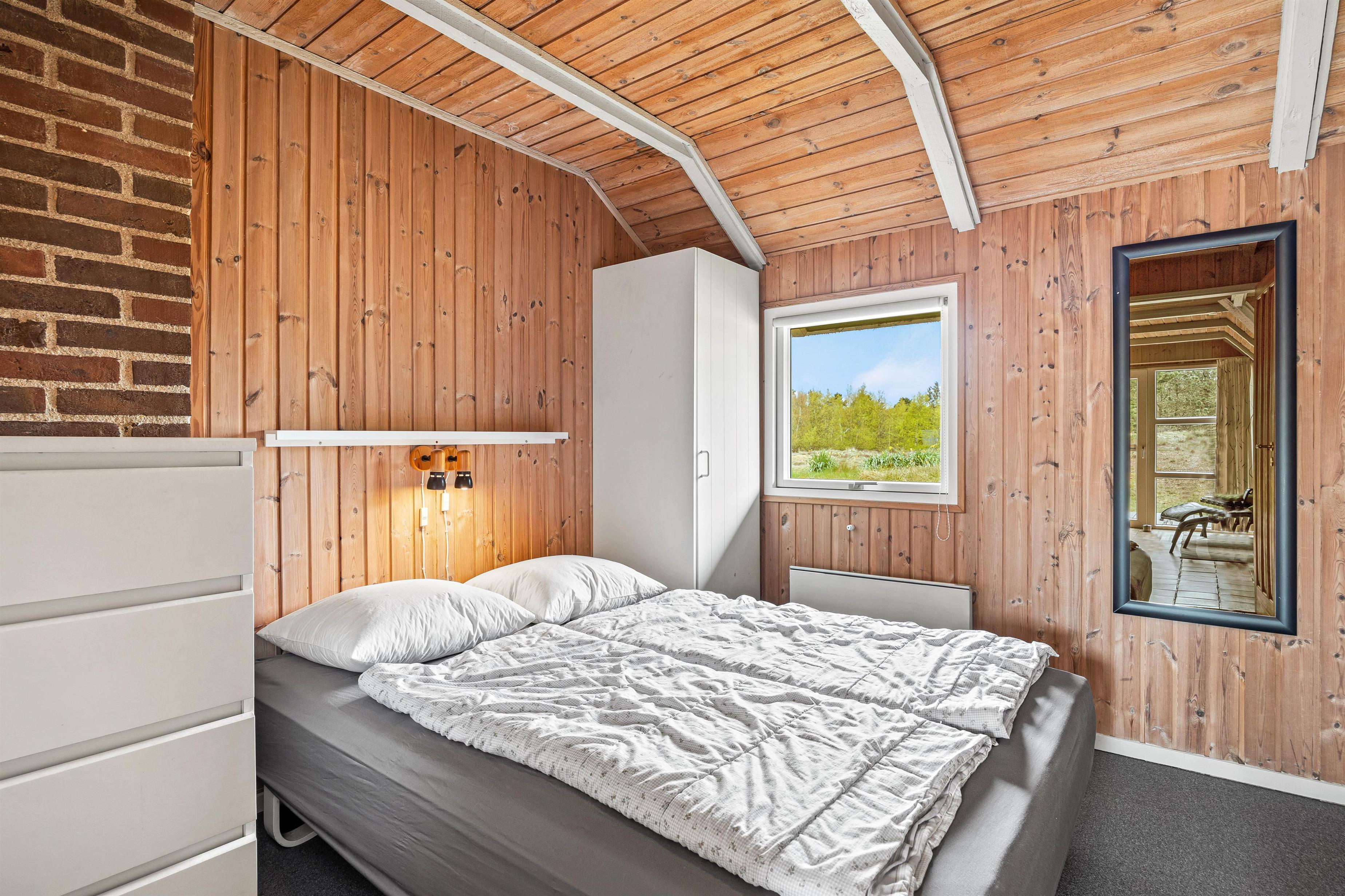 Sommerhuset er indrettet med 3 soverum hvoraf 2 er med en 140x200 cm dobbeltseng, og det sidste med en 70x200 cm køjeseng. Derudover venter jer her et lyst badeværelse med gulvvarme og sauna, så I rigtigt kan få varmet musklerne igennem efter en aktivitetsrig feriedag på Fanø.